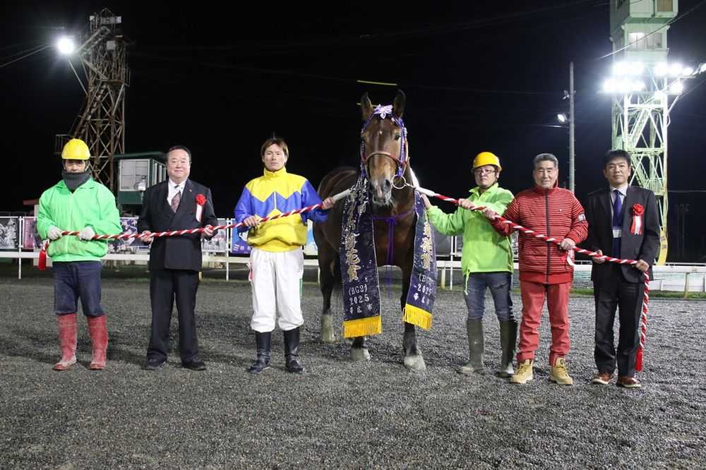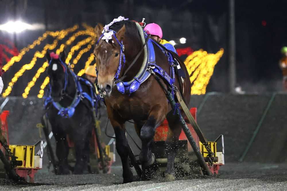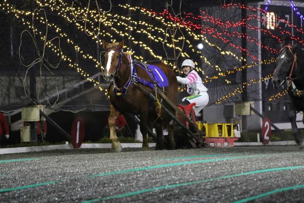 お楽しみ頂きありがとうございました。 振り返れば月が替わって直ぐの11月1日(土)。 道東を中心に朝から暴風雨に見舞われました。 帯広では最大瞬間風速19.2メートルを記録しました。 外出は少し怖い中でしたが、開催が行われました。 まとまった雨の影響で軽い馬場になり、強い向かい風を感じさせない速い時計が目立ちしました。 翌日は青空が雲の隙間か見える時間帯もありましたが、前日の水分が残り馬場水分2.9%からスタートしました。 この日も時計は速めの決着が目立ちました。 第10レースには胆振日高生産連杯『第38回南北海道産駒特別』が行われました。 今季も“ばんえい甲子園”が幕を開けました。 2開催レースをせずに出走してきたフェスタクィーンが人気を集め先頭で第2障害を降ります。 これに、その後2障害を下ったパワーウンカイが残り30メートルで一気に並びかわし勝利。 これら上位2頭が2歳2冠目の重賞ヤングチャンピオンシップに駒を進めました。 ![]() ※パワーウンカイ(主催者提供) ![]() ※フェスタクィーン(主催者提供) 2頭共に降りて良い脚を見せ、2冠目が楽しみなパフォーマンスを見せてくれました。 第11レースには3歳3冠戦の2冠目『第50回ばんえい菊花賞』が行われました。 各馬スタートし第1障害を越えるとホクセイテンリュウが先行。他馬も大きく離れず続き、ほぼ刻まず1~2障害の中間を過ぎます。 その後、ようやくペースが多少ですが落ち着きます。ほぼ10頭が一団のまま進み、先行するホクセイテンリュウが先頭で各馬が第2障害に到着します。 第2障害では一息入れたスターイチバンが最初に挑戦、その後ラポピージュニア、ココロノニダイメ、ホクセイテンリュウ、スーパーシンと続々と登坂を開始。 するとスターイチバンとラポピージュニアがほぼ同時に2障害を降ります。その後ホクセイテンリュウ、スーパーシンが続きます。 前を行くラポピージュニアとスターイチバンにスーパーシンが並びます。その後ラポピージュニアとスーパーシンが並んで抜け出しマッチレースに。 激しい競り合いは、ゴール寸前でラポピージュニアが1、2歩ほど前に出てゴール。 重賞初挑戦で3歳2冠目である「第50回ばんえい菊花賞」を制しました。 ![]() ※主催者提供 ![]() ※主催者提供 スーパーシンは僅かに遅れての2着。スターイチバンは3着でした。 ラポピージュニアを管理する鈴木邦哉(すずき・くにや)調教師は昨年のスマイルカナに続く2度目のばんえい菊花賞制覇。騎乗した西将太(にし・しょうた)騎手はばんえい菊花賞初制覇となりました。 お二人のインタビューはこちらから。 ↓ ↓ ↓ ↓ 第50回ばんえい菊花賞BG2ラポピージュニア 性格は母親(サンシルクラポピー)に似ている。でも母親は体が大きかったのに対し、この馬は小さかったので無理をさせず少しづつ成長させたとの事。 サンシルクラポピーはミスタカシマと同じ世代。重賞は「黒ユリ賞」と「クインカップ」の3着が最高でした。 母の果たせなかった重賞制覇を初挑戦で果たしたラポピージュニア。 今後の更なる成長が楽しみです。 関係者の皆様おめでとうございます。 お気に入りの記事を「いいね!」で応援しよう