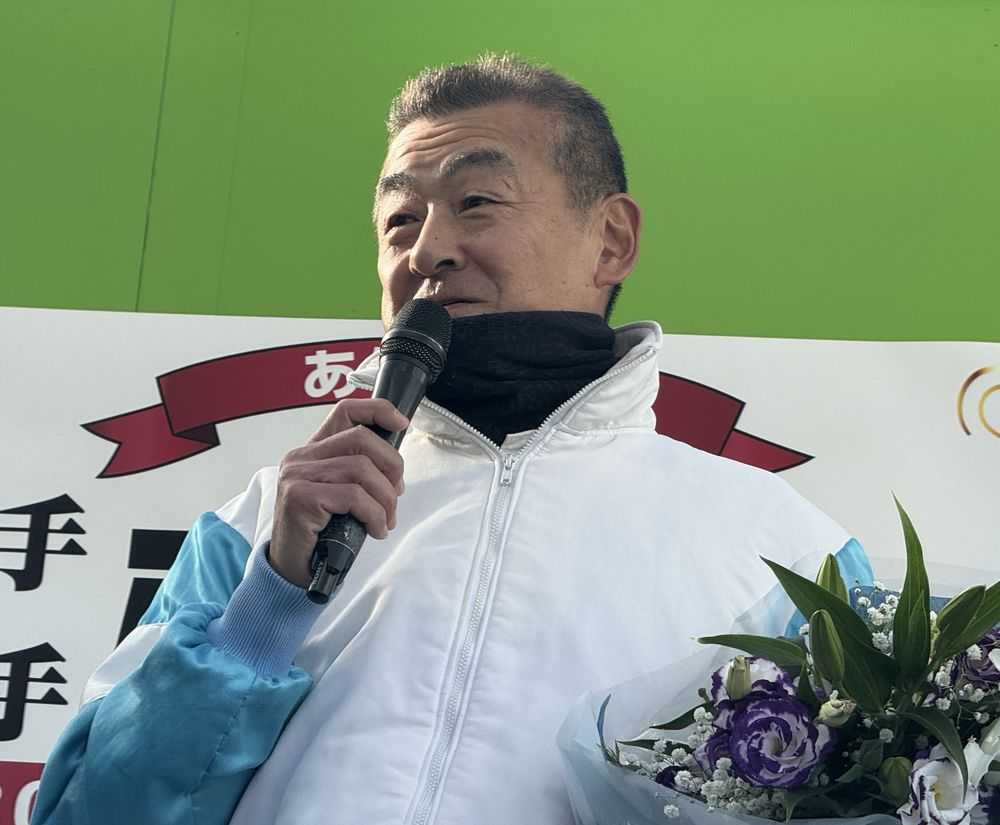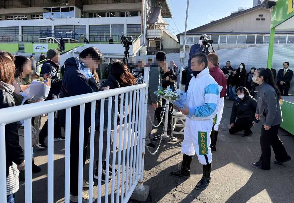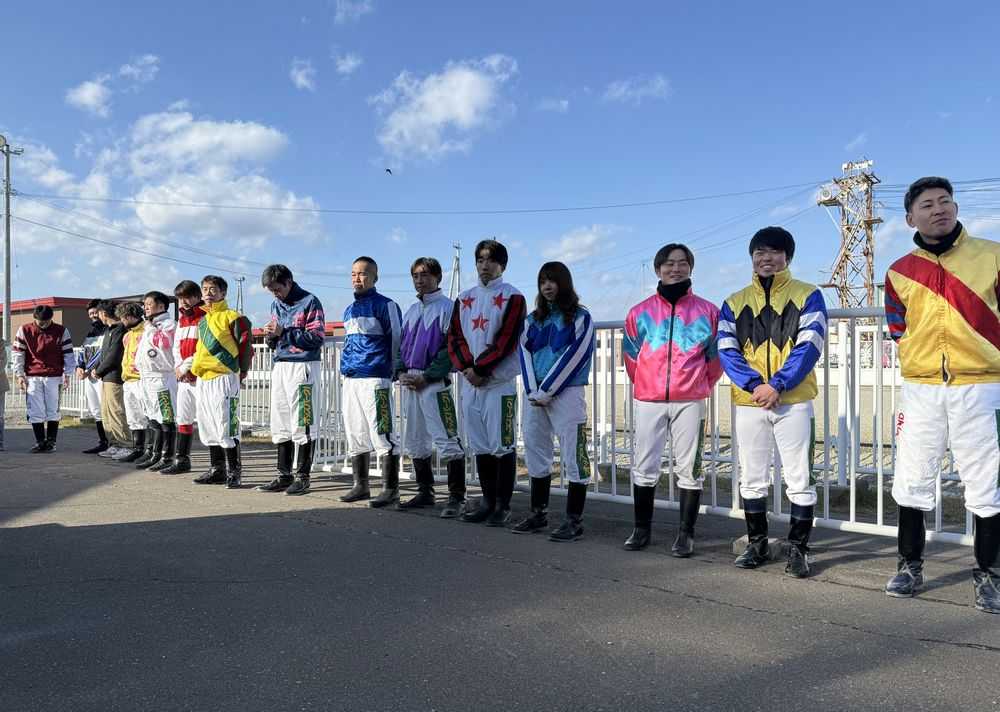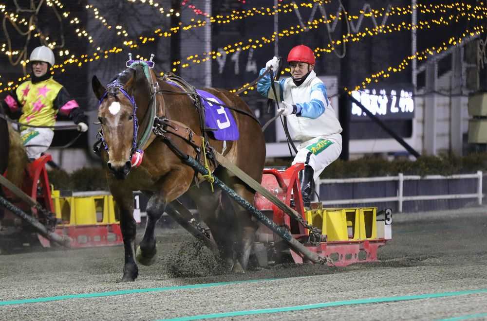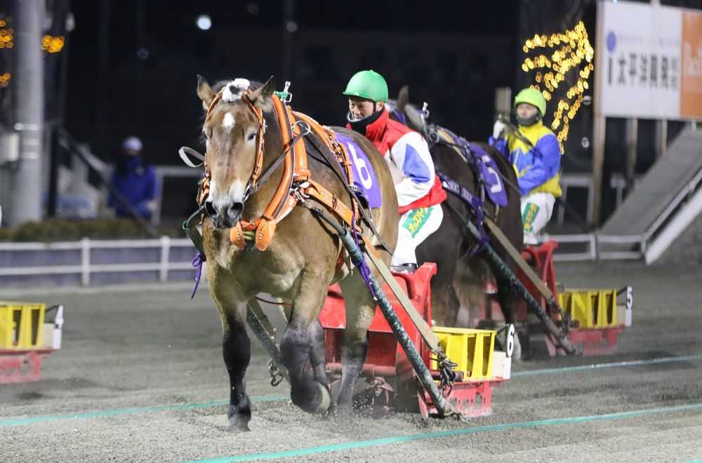 ![]() ![]() この看板ですが、夜になると周りのLEDが光とても綺麗でした。 ![]() ご覧のように撮影する方も居ないとか現れないとか。 30日(日)は開催前に藤野俊一騎手と藤本匠騎手の引退セレモニーが行われました。 さすが長きに渡り、一線級で活躍したお二人。 多くのファンが集まり、プレゼントを渡す列も簡単には途切れませんでした。 ![]() ![]() ![]() ![]() ![]() ![]() 最近は恒例になった胴上げも行われました。 二人とも3度、宙に舞いました。 このあと藤本匠騎手は5つのレースに騎乗。 第5R、第10R、第12Rで勝利し通算4876勝としました。 ばんえい史上最多勝利記録を更に更新し橇から降りました。 最終レース後、パドックにまた騎手の輪が出来て胴上げが行われました。 本当に見事な有終の美でした。 藤野俊一騎手、藤本匠騎手お疲れ様でした。 調教師としてのご活躍をお祈り申し上げます。 レースでは第10レースに『第42回釧路産駒特別』が行われました。 今季、最後のばんえい甲子園。 勝ったのはジェイノホマレ。先行し押し切って勝利。 ![]() (主催者提供:1着ジェイノホマレ↑) これを追いかけたクリスタルアッシュは差が詰まらず2着でした。 ![]() (主催者提供:2着クリスタルアッシュ↑) これで重賞ヤングチャンピオンシップへのメンバーが出そろいました。 年末の本線も是非ご期待下さい。 第11レースには今季最初のBG1競走。 ソメスサドル杯『第50回ばんえいオークス』(BG1)3歳牝馬オープン定量の一戦が行われました。 ほぼ一団で第2障害の手前に各馬が到達。 息を入れパワフルクィーン、ホクセイヒラリ、プロサングエがほぼ同時に挑戦を開始します。 力強く上がってくるホクセイヒラリを中に、内パワフルクィーン、外プロサングエが並んで降ります。 残り30М手前でプロサングエの脚が止まり、ホクセイヒラリとパワフルクィーンの一騎打ちに。 じわじわとホクセイヒラリが突き放し、ゴール前ではパワフルクィーン1馬身少々離して勝利。 見事ばんえいオークスを制覇しました。 ![]() (主催者提供:優勝馬ホクセイヒラリ↑) ![]() (主催者提供:優勝馬ホクセイヒラリ↑) ![]() (主催者提供:優勝馬ホクセイヒラリ↑) 2着には最後の重賞となった藤本匠騎手が騎乗したパワフルクィーンが、3着にはプロサングエが入りました。 優勝したホクセイヒラリを管理する平田義弘調教師は「ばんえいオークス」をジェイカトレアで制した2019年に続く2度目の制覇。騎乗した鈴木恵介騎手はルイズで制した2023年以来の6度目の制覇となりました。 お二人のインタビューはこちらからどうぞ。 ↓ ↓ ↓ ↓ 第50回ばんえいオークスBG1ホクセイヒラリ 関係者の皆様、おめでとうございます。 お気に入りの記事を「いいね!」で応援しよう