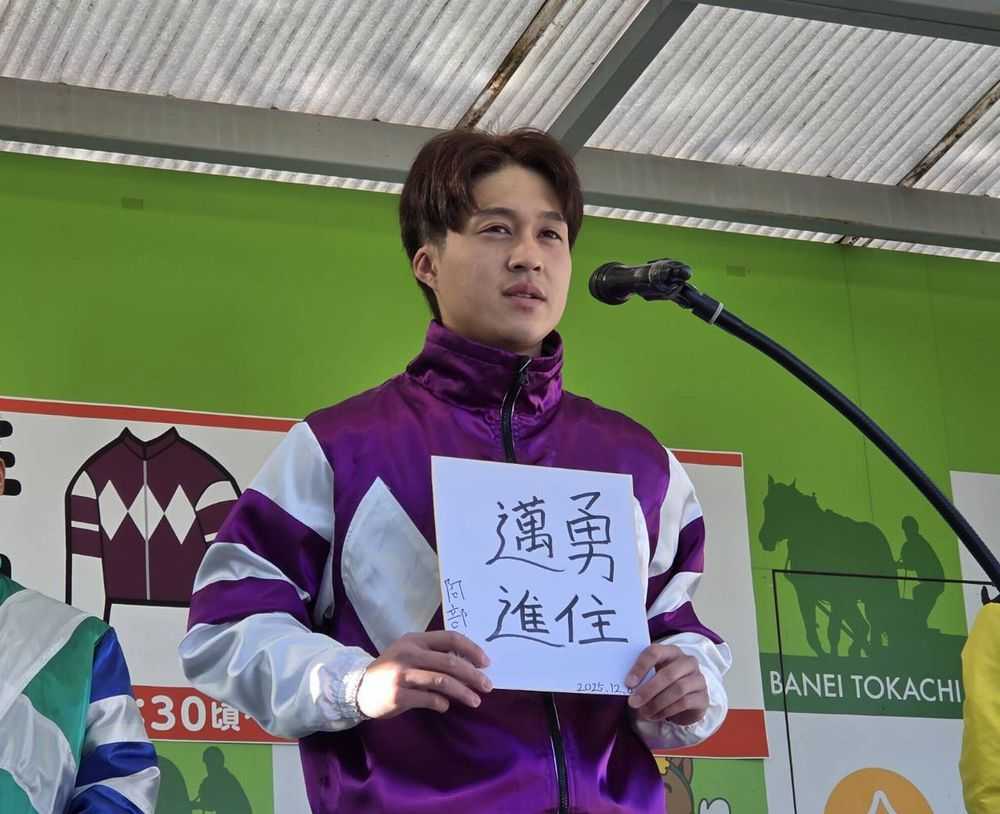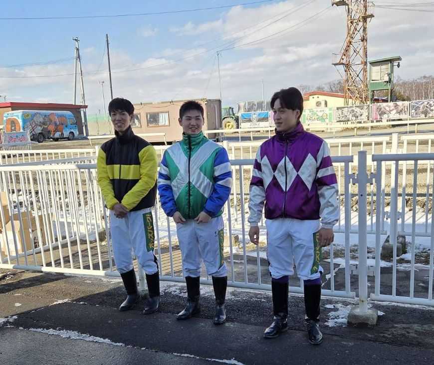 初々しい騎手の姿に集まったファンから温かい拍手がおくられました。 ![]() ![]() ![]() ![]() ![]() ![]() イベントの最後にはファンからプレゼントや応援を受けたりサインに応じていました。 ![]() ![]() ![]() その後、レースで初日から3名共に見せ場がありました。 ●阿部優哉(あべゆうや)騎手 2R…ウル 7着 3R…アアモンドサン 3着 4R…カイロルーラー 2着 7R…アアモンドラヴリー 中止 8R…イワキクロヒョウ 9着 9R…カワノデッカー 2着 11R…ホクショウレディー 6着 ●臼杵龍美(うすきたつみ)騎手 2R…マルホンヒュウガ 3着 9R…アソノリキ 6着 ●吉田理人(よしだりひと)騎手 1R… ミスオホーツク 2着 4R… キンノロナ 3着 10R… アアモンドオーザン 4着 3名ともデビュー日の初勝利は叶わなかったですが、惜しい2着・3着のシーンが何度も見られました。 初騎乗のコメントが公式ホームページにありますので是非ご覧ください。 ↓ ↓ ↓ ↓ 新人騎手|初騎乗コメント 翌日7日(日)阿部優哉騎手が第6レース「C1-2」の一戦で、クリスタルスノーに騎乗し初勝利を挙げました。 ![]() (主催者提供) デビューから10戦目での初勝利でした。 是非インタビューをご覧ください。 ↓ ↓ ↓ ↓ 阿部優哉騎手|初勝利インタビュー 8日(月)は雪降りの中での競馬。 ![]() 第5レースの2歳戦で直行が見られるなど速い展開が多く行われました。 第6レース「C1-10」の一戦ではダイヤクィーンが勝利。 騎乗した赤塚健仁騎手が、この勝利で通算1000勝を達成しました。 ![]() (主催者提供) 新人騎手だけではなく、中堅や若手も負けられない所を見せてくれた開催でした。 レースではメインにSTV賞『第42回レディースカップ』4歳以上牝馬選抜別定の一戦が行われ、人気を集めたサクラヒメが快勝しました。 ![]() (主催者提供) 前走ドリームエイジカップで激しい競り合いをする中、ゴール前で転倒。 後遺症を心配していた方も居たかもしれませんが、全く無かったですね。 またサクラヒメらしいスピードが見られました。 優勝馬関係者の皆様、おめでとうございます。 お気に入りの記事を「いいね!」で応援しよう