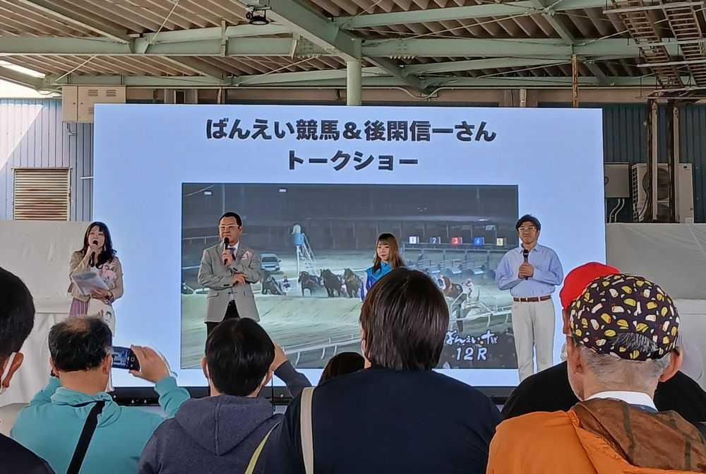 前回の記事でお伝えの通り、ばんえい十勝は3月28日(土)、29日(日)と豊橋競輪場でPRイベントを行いました。 いつも全国各地でばんえいをPRするハクウンリューが今回も大活躍。 豊橋競輪場に到着した時の様子がばんえい公式のXに写真がUPされています。 地元の猫なのか?なんか仲が良さそうでとても癒されます。 ![]() (主催者提供) ![]() (主催者提供) 天候にも恵まれたようで、ポカポカ陽気の中イベントが行われたようです。 南エリアでは午前10時から整理券が配布され、ハクウンリューとのふれあいや馬車運行が行われました。 ![]() (主催者提供) ![]() (主催者提供) 普段はなかなかお目にかかれないばん馬の大きさと優しさに、きっと現地の皆さんもメロメロになったはずですよね! 春らしく可愛い「桜の飾り」も良く似合ってます。 今回のイベントをさらに熱くしたのが、豪華なゲスト陣によるトークショー! ばんえい競馬から今井千尋騎手、競馬ブックの定政紀宏さん、そして28日(土)は日野未来さんが登場しました。 ![]() (主催者提供) 翌日、29日(日)は後閑信一さんが登場しました。 ![]() (主催者提供) また豊橋競輪の田中千尋選手がブースに遊びに来てくれたとの事。 ![]() (主催者提供) まさかのW千尋ショットが実現! 競技の垣根を越えたダブル千尋のレアで素敵な一枚でした。 今後も「ばんえい十勝」は以下の内容のイベントを実施予定です。 お近くの方はぜひ足をお運び下さい。 ![]() (主催者提供) ![]() (主催者提供) お気に入りの記事を「いいね!」で応援しよう