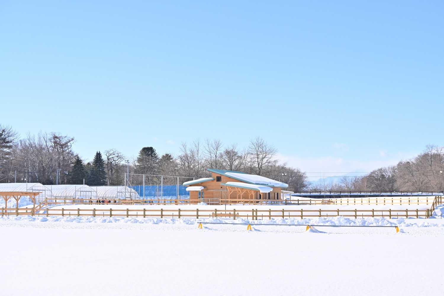 馬車BARで有名なムサシコマ。路面が凍結している冬季は、帯広で有名なパン屋さん、ますやパンの「麦音」で馬ソリを引いています。「麦音冬あそびパーク」は今年は1月10日からスタートし、2月8日までの土日祝日です。10時半から30分おきに6回。1月31日、2月1日は馬グッズ販売会が行われます。ムサシコマは幕別町の観光庭園「十勝ヒルズ」で過ごしていましたが、昨年12月、ますやパン「麦音」の敷地内に馬牧場と厩舎が完成。ムサシコマはここに住むことになりました。12月下旬、メディア向けお披露目会が開かれたので紹介いたします。麦音の南側、小高い丘の上にきれいな厩舎が建っていました。どんどん近づいていくと…おお、きれい!!十勝産小麦を使ったおいしいパン屋さんの「ますやパン」。いくつか店舗があり、その中でも麦音は敷地面積が日本最大級といわれています。木々が建ち並ぶ庭は十勝や小麦畑を感じられる作り。麦音と馬牧場の設計、建築は、国内外で活躍し十勝に拠点を構える高野ランドスケーププランニングと象設計集団が行いました。人と自然の調和など、建築に詳しくない私でも、この素敵な公園や建物が!と驚くような素晴らしい施設を設計している会社です。ちなみに高野ランドスケーププランニング創業者の高野文彰さんは馬術選手としても有名でした。木製の厩舎はばん馬用の大きめな馬房が4つ。今後ばん馬がもう一頭と、北海道和種馬(ドサンコ)が3頭増える予定です。コマも友達が増えますね。馬房には、ドサンコは2頭一緒に入ることになりそうです。天井は高く、道産材のカラマツを使った明るい雰囲気の厩舎。カラマツは強度と水への耐性が高いそうです。将来的に厩舎見学ツアーも検討していることから、安全面にも気を遣った馬房の作りとなっています。帯広競馬場の厩舎を参考に、帯広畜産大のアドバイスも受けて作られたそうです。外に出るとつなぎ場があり、その先は放牧地となっています。坂があるので運動にもなりそう。雪が多くてわかりにくいですね💦完成予想図を見ると、柵の近くまで行って馬を眺めていられそうです。餌やり体験もできるそうで、ひき馬も計画しているそう。完成予想図です(満寿屋商店提供)手前が馬牧場麦音内を馬車が走る計画もあるそうで、新しい馬車もビニールハウスで出番を待っています。本格オープンは4月中旬予定です。ますやパンを運営する「満寿屋商店」の杉山雅則社長によると、麦音ではたくさんイベントを行っている中、馬は人気で「客の表情が違う」そう。春には小麦畑を馬で耕すイベントもあります。満寿屋さんは十勝とパンをつなぐ活動を積極的に行っており、次は十勝の歴史を築き農業の発展に貢献した馬を身近にしたい、という話をされていました。私から見ても、杉山社長はすっかり馬にハマっているように見え、大変うれしく思います(笑)十勝の歴史を考えると、馬にたどり着くのかな…と思います。満寿屋商店と小麦を栽培する三浦農場、マッシュルームの「とかちマッシュ」で有名な鎌田きのこ、製粉業者のアグリシステム、ばんえい競馬、という十勝の5企業・団体によって、生産活動を循環させる「ばん馬toきのこto小麦の輪」というプロジェクトが2015年からスタートしています。ばん馬の馬房で使われていたふんや麦わらはとかちマッシュの培地となり、菌床から作った堆肥で小麦が育ち、小麦は製粉され、小麦粉「ばんえいキタノカオリ」はパンになる。小麦を収穫した後の麦稈は競馬場の馬房へ、という流れができています。パンはとかちマッシュの香りが豊かな「うまっしゅパン」で、上品で豊かな香りでとってもおいしいんです。この「地域資源循環プロジェクト」を感じられる場所として、また十勝や食の価値、興味を高めようと、大きな役割を果たしている馬の牧場が作られることになりました。そこでムサシコマの新しい厩舎と放牧地が誕生したのです。馬車BARを運営する十勝シティデザインの坂口琴美代表は、「十勝は温泉やチーズは知られてきたが、馬は表に出る機会がなかなかなかった。馬を子どもに見せたい」と話していました。競馬場にいると馬のことはかなり知られていると錯覚してしまいますが、まだまだ市民にとって馬は遠い存在です。坂口さんは馬好きでもあり、昔は当たり前のように馬がいたことを「宝物のようなもの」と表現。大切に伝えていきたい、との思いを口にしていました。本当にそう思います。さて、先日「麦音冬あそびパーク」に行ってきました。この時はまだ十勝ヒルズからご出勤。スタート地点が昨年までの店舗横から、少し奥に移動していました。雰囲気がとてもいい場所です。新厩舎を横目に見ながら馬そりは進んでいきました。ここはキタキツネが何匹かいて、足跡がたくさん残っていました。一度見かけたけどそのうちどこかに行ってしまった。4月のオープンを楽しみに待ちたいと思います。取材/小久保友香