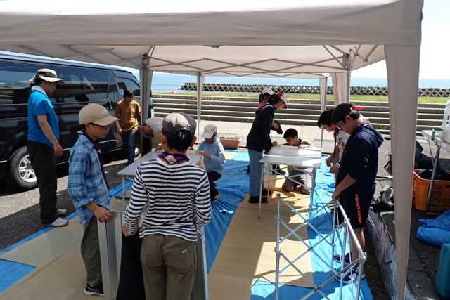 天気は最高! 気温も最高!! 夏をエンジョイしてきました~~~!! ![]() 昨夜はちょっと雨でした。 涼しめの朝。 気持ちがいいです。 ![]() 今日の収穫。 隊長の家庭菜園のこの野菜達はキャンプの差し入れです。 ![]() 早朝集合でも元気です! まずは開会式。 ![]() ボーイと共にベンチャーも一緒に行きます。 にぎやかになりました。 中3が全員欠席なのも残念でした~。 受験生だもんね、仕方がないね。 ![]() いざ出発です! ![]() おお~~、能登は晴れているぞ~~! ![]() 初めての大野木のスカウトばかりで、感動してくれています。 ![]() 生きていたウルトラマン君と共に搬入です。 ![]() その前に第2回開会式。 ![]() 隊長の熱のこもった熱い挨拶に、気温もぐんぐん上がっております。 ![]() 田んぼが地震でダメになったのか悲しいけれど、夏の風景は健在です。 ![]() 日陰に設営完了~。 ![]() 搬入~ ![]() 設営~~ ![]() 海の家っぽくなってきた! ![]() 土足でどんどん組み立てていきます。 こう言うの、気にしないのね。 ![]() 組み立て方で悩む。 ![]() ベンチャーも資材を取りに来ました。 去年までこっち側だったのに、寂しい限りですわ。 ![]() 夏の空がきれい。 ![]() エネルギー補給完了! 安全装備バッチリ!! ![]() いざ、海へ。 ゴミの漂着がすごい。 ![]() ![]() ![]() ![]() グーちゃんも行っていました。 ![]() ![]() ![]() ![]() ![]() ![]() 飛び込み大会スタート!! ![]() ![]() ![]() ![]() ![]() ![]() ![]() ![]() ![]() ![]() ![]() ![]() ![]() ![]() ![]() 波に流されて洞窟に吸い込まれ、かなり焦っているスカウト。 ![]() みんなで助けに行く。 ![]() 救助成功! 足届くんだけどね。 ![]() まったり海水浴タイム。 ![]() まだ午前中なのよね。 ![]() ![]() 昼休憩でシャワータイム。 いる? ![]() ランチタイムのイケメン写真。 ![]() まったりランチタイムにお話し中。 ![]() 午後の部スタート。 ![]() 午後は、ろこぎ体験で、アルカディア号発進。 サニー号でも、ヤマトでも、ペルセウス号でもありません。 ![]() ちょうむずい。 ![]() 全然うまくいかない。 ![]() 先生がいるのでがんばっています。 ![]() 泳げないスカウトは、背泳ぎの練習中。 ![]() サップもあるよ。 ![]() 青春て感じ~~。 ![]() 先生がいなくなったので、適当に遊べるようになりました。 ![]() ロープで引っ張って動かして、飛び込み大会スタート! ![]() きれいな海で、南国のようです。 ![]() ベンチャーは早めに上がって海の家で待ったり中。 ![]() ![]() ![]() ![]() ![]() ![]() ![]() ![]() ![]() ![]() ![]() 海から上がって休憩時間は、明日の手旗大会の練習中。 歴代ナンバー1なくらいできない世代。 しっかり覚えよう! ![]() 覚えるスカウト、あきらめるスカウト。 ![]() ベンチャーはようやく設営。 ![]() 晩ご飯の準備です。 ![]() いい日でしたね~。 ![]() サザエを頂きました! 立派だけど、裁ける人がいないので、四苦八苦。 ![]() 四苦八苦中。 ![]() 才能開花のスカウト。 ![]() ![]() ![]() がんばっています~ ![]() ![]() あきらめた・・・ ![]() ベンチャーは、花火も手作りです! アルミ缶を削って作っています。 すごいことを思いつくな~。 さすが理系隊長の隊だわ。 ![]() 物干しを作って干しています。 ![]() 晩ご飯! ![]() できるだけ簡単レシピ、洗い物少なめで。 ![]() ![]() 野菜炒めみたいになっているな。 ![]() ![]() デザートは、噴水フルーツポンチ。 ![]() まさかの微炭酸!! ![]() しょぼ! って、かお~~~(*≧m≦*) ![]() 別腹デザートは瞬殺でなくなった~。 ![]() 食ったから道で寝る。 ![]() 洗い物もがんばります! ![]() こちらは花火の分配中。 ![]() 夜は海辺で花火大会と星空観察です。 この年代は、全く理科に興味がないので、ちょっと残念~~。 めっちゃ星が見えて、天の川もあったんだけどな~。 ![]() ![]() ![]() ![]() ![]() ![]() ![]() ![]() ![]() ![]() ![]() めちゃくちゃ楽しい1日でした。 明日も全力で遊ぼ~~~!! お気に入りの記事を「いいね!」で応援しよう
