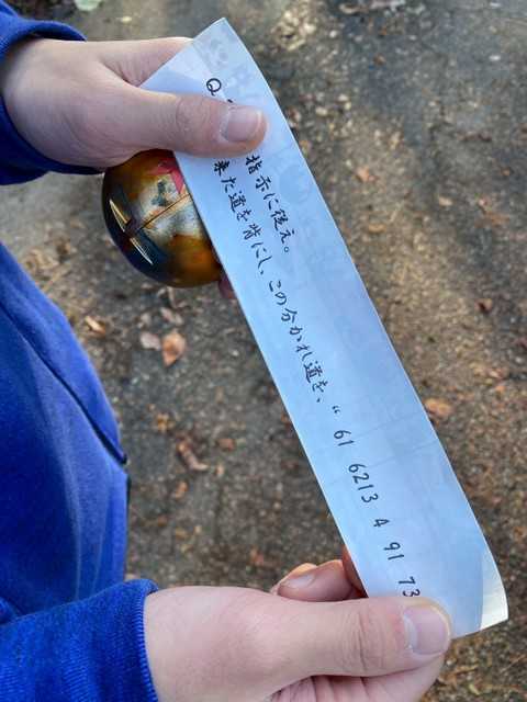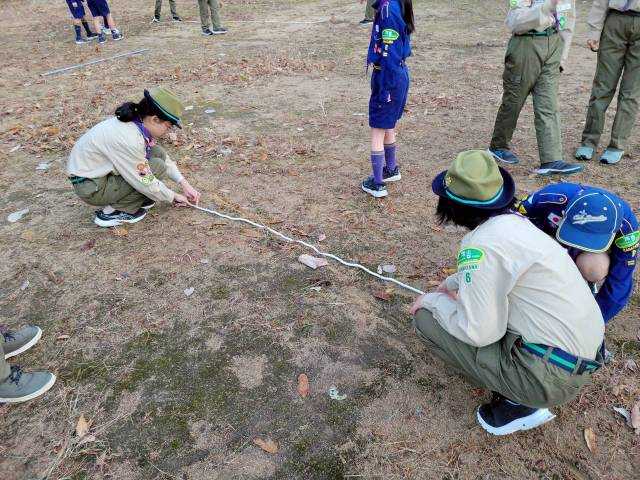 夜更かししたツケは、目覚めの時に払うもので、まあまあしんどかったけれど、 若いスカウト達は、カブの数名以外はシャキッと起きておりました。 すごすぎです。 今日もいい天気に恵まれて、昨日勉強をしたことを実践で生かすべく、秋のハイキングに行ってきました。 最近のボーイ隊では、10kmが普通の距離になっているので、カブではなかなかきつかったようです。 とは言え、午前中3時間で回ってくるので、うちのスカウトもたいしたもんです。 ![]() 今朝もいい天気です。 ![]() 国旗掲揚で、朝の集いは始まります。 ![]() がんばれ! ![]() 久しぶりに大きなU字形。 ![]() スカウツオンをやってくれました。 まあまあの出来でよかったです。 ![]() 朝のゲームは、ちょっと難しい距離測定。 歩測以外でやるはずが・・・ ![]() 最初はロープでやっていたけど・・・ ![]() めんどくなってきて・・・ ![]() 歩測でやったのに、誤差6cmのすごさ。 30mが体に染みついたのかも。 ![]() 優勝チームにイヤサカのエールです。 朝ご飯は、豪華なコーンフレークで済ませて、ハイキングに出発です。 ![]() ちゃんと整列できて偉いです。 ![]() 昨日学んだ読図で、7つの玉を探しに出発です。 ![]() いってらっしゃ~~~い! ![]() 1個目発見。 ここからは順番バラバラの写真になります。 ![]() 山道を下を向いて歩いているのは、歩測しているからです。 鬼の副長の発案ですからね。 私じゃ無いですよ。 ![]() 長い距離をがんばりました。 1000歩超えています。 ![]() 次の玉に指示が。 手旗、覚えているかな? ![]() 計算やら解読やらで時間がかかります。 ![]() 歩きたくないスカウトをなだめすかして連れて行く。 ![]() いつもは車ぴゅ~~~っと行く道を。 ![]() 木漏れ日がきれいですね。 ![]() 次の玉が。 ![]() 班長ががんばって解いています。 アスリートな班なので、ペースが速い。 ![]() コンビニで買い物をする指示が。 くまスカウトはびっくりしたでしょうな。 ![]() おじいさまの接客が面白かったそうで・・・ ![]() こういう時に食べたものって、美味しく感じるんだよね~。 ![]() こだわり抜いて作った玉。 この出来でこのハイキングの善し悪しが決まる。と、私は思っている。 ![]() 速い・・・・ ![]() 上班もなぜか謎解き中。 ![]() 歩けないとだだをこねるスカウトをみんなで助けている。 来年から、上進してきたらもっと過酷になるので、鍛えておかないとダメだよ。 ![]() ![]() 追いついたり追い越されたり。 ![]() これは下弦の月だよ! ![]() 大変そうだ。 よく頑張りました。 ![]() 班長達は、スカウトの面倒も見つつ、コンパスで方向を確認しています。 ![]() 最後の玉の回収も成功。 ![]() ベンチャースカウトのおかげでなんとか帰還した。 ![]() いい景色ですね。 ![]() ![]() ![]() 玉発見! ![]() ![]() ![]() 歩測中。 ![]() ![]() ![]() 見つけた! ![]() こりゃなに結びだ? ひきとけ? ひとえつぎ? もやいかも・・・・ ![]() ここにあった! ![]() 買い食いしていいって!! ![]() いえ~~~い!! ![]() ![]() あ~~~、そっちじゃ無いのよね~ ![]() ![]() またまた発見! ![]() 無事にゴールできました。 ![]() 最後の班が50分遅れで到着しました。 ![]() いろいろあったみたいで、みんなグッタリしておりました。 ![]() お店で買ったものも食べています。 うめ~~~! ![]() お店と値段設定のおかげで、非常に微妙なものしか買えなかったという絶妙な感じ。 ![]() お疲れ様でした! ![]() ちなみに7つの玉は、ここにありました。 ![]() ![]() ![]() ![]() ![]() ![]() 落ち葉で分かりにくい。 願いが叶ったかな? ![]() がんばった証ですね。 1100mなので、誤差無しです。 ![]() お昼ご飯はリーダーが作りました。 ![]() 闇鍋カレーうどん。 ![]() めっちゃ食う。 ![]() 黙々と食う。 がんばったからお腹も空いたよね。 お菓子も食べてるはずなんだけど・・・ ![]() 食後はまったりな時間です。 ![]() カブスカウトは遊んでいます。 ![]() でも、ボーイのみんなは、 ![]() 片付けをがんばっています。 トイレ掃除もしています。 ![]() 掃除機をかけ、 ![]() こっちの部屋もきれいにしました。 来年は、上進してきたらみんながやることになります。 ![]() ひとしきり遊んだので、閉会式です。 今日も時間通りできたのは、みんなでがんばったおかげです。 大変素晴らしいです。 ![]() ![]() 国旗降納で終了。 ![]() お迎え待ちです。 ![]() リーダーは、もういっちょ片付けをして終了。 長い戦いでした。 ![]() 計画書を作ってきたスカウトがいました。 宿題になっていたものですね。 いろいろ突っ込みどころはあるけれど、ちゃんと作ってきたのは偉いです。 これを元に、1月の雪遊びプロを考えていこうと思います。 ![]() 兵どもの夢の跡。 来年も来られるでしょうか。 来年は晴れるでしょうか。 今年は本当に恵まれていましたね。 今日という日に感謝しましょう。 お気に入りの記事を「いいね!」で応援しよう