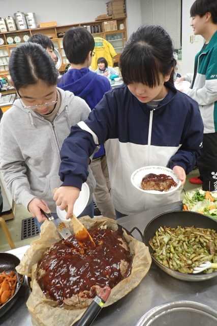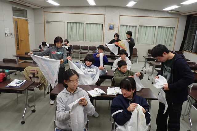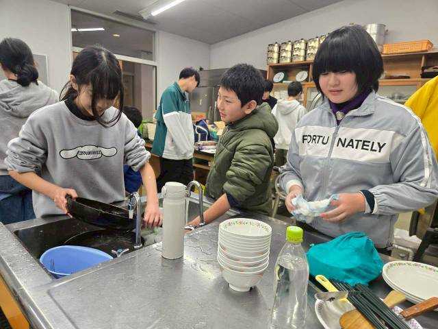 今年最後の活動は、恒例のスポーツ合宿。 スカウトみんなでいろんなスポーツに挑戦しました。 うちのスカウトは、まあまあスポーツ音痴。 多分学校では、スポーツできる子に押されて、なかなか挑戦できないポジションにいるのでは? なんて思われる感じなのですが、このスポーツ大会は、そんなへっぽこが集まっているので、 気兼ねなく、のびのびと笑いながら挑戦できるところがいいところです。 少しでもいろんなスポーツに挑戦してもらって、 自分に合ったものを見つけてもらえればいいかな。と、思います。 夕飯は、有名な漫画に出てくるメニューと、隊長立案の渾身のメガ和風パフェでした。 見栄えよし、迫力よし!の夕飯となりました。 量が多すぎてやっと食べきりましたが、お腹いっぱいで満足満足です。 年プロや救急法をちょっとやって、今日は終了。 天気にも恵まれて、いい1日でした。 ![]() 毎年、雪になるのでした。 今年は少なめで助かった。 ![]() それでもまあまあの積雪かな。 ![]() スキーもできる感じ。 ![]() 極寒の体育館で、ちょっと人数も少ないですが、開会式です。 ![]() リーダー、上班あわせて準備運動。 ![]() みんなが学校でやっている準備運動をやりました。 ![]() 1500メートル持久走に挑戦。 進級科目に挑戦中。 ![]() 地獄リレーもやりました。 ![]() ほんとに地獄だった。 ![]() バスケの準備中。 ![]() チームに分かれます。 ![]() バスケの練習。 全然できないので、ドリブル、パス、ルールを教えました。 ![]() 試合スタート。 ![]() 腹が減ったので昼食。 ![]() 午後はバレーボール。 当然できないので、トス、レシーブ、サーブ、ルールを教えました。 ![]() なんとか少しできるようになりました。 ![]() 試合開始です。 一番盛り上がったかな。 夕飯作りです。 ![]() 応援に駆けつけてくれたVS達。 美味しいスープを調理中。 ![]() メガ和風パフェを制作するグリンバー達。 ![]() 隊長の設計図を元に、作っていきます。 ![]() タマネギを刻んでハンバーグ作り。 ![]() でかい! フリーレンの馬鹿みたいでかいハンバーグ。 焼き上がるのでしょうか?? ![]() かわいいリーフサラダを作っています。 ![]() 特製デミグラスソースを作っています。 ![]() サラダ班の向こうでは、きんぴらポテトとニンジンの醤油焼きを作っています。 ![]() なかなか難しい電動泡立て器。 ![]() かわいいトッピングのリーフサラダは、一足遅いクリスマスのイメージ。 ![]() こんな感じで、豪華夕飯の完成です! 2時間15分かかったけれど、がんばりました。 ![]() 馬鹿みたいにでかいハンバーグもうまくいきました! ![]() 取り分けていきますよ~。 ![]() ポテトもいい感じでできました! ![]() とてつもなくでかいのが分かる。 ![]() 盛り付けたらこんな感じ。 200g強のハンバーグの迫力。 ![]() うまい! ![]() うまし! ![]() じゃじゃ~~~ん、メガ和風パフェ下の段。 ![]() 上の段を載せれば完成!! でかい!かわいい!!おいしそう!!! ![]() 白いクリームの中は、副長特製のシフォンケーキが時別に隠されていて、 富士山のイメージ。 だったんだけど、上に森のような抹茶アイスが鎮座しちゃった。 白玉団子とわらび餅が周りを固めます。 ほぼイメージ通りのメガパフェ。 ![]() みんなで頂くぜ~~~ ![]() あっという間に完食だぜ~~~!! ![]() そして、自由時間を確保するため、みんなで協力をして、 速攻で片付けをします。 ![]() 眠たいけれど、渋々救急法の講習会。 ![]() 三角巾に挑戦中。 ![]() なんて?なんて?どうやるって?? ![]() いい感じでできるようになってきました。 ![]() 2月14日に本格的な救急法があるので、その予習です。 ![]() みんななかなかいい感じです。 ![]() 今日うまくできなくても、またやるので、家で少し練習しておいてくださいね。 ![]() 三角巾最終形態完成で終了。 ![]() あれ?なんか食べているけど・・・ 内緒の非常食パーティが見つかってしまいました! そんなこんなで夜が更けていきました。 明日は最終日。 最後までがんばろう! お気に入りの記事を「いいね!」で応援しよう
