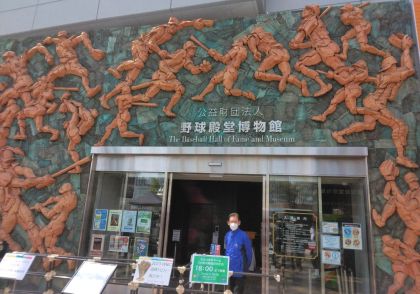 野球殿堂博物館。12球団の選手が提供したユニホームやグラブやバットが展示されている。僕は今は楽天のファンなのでパチリ。ユニホームは浅村選手のもの。足元には三木監督のサインもあった。 うちの息子はなぜか、ロッテと西武の間で記念撮影。巨人のコーナーには、昨年田中将大投手が日米通算200勝を達成したときのボールが。手前は坂本勇人選手の2000本安打のバットもあった。 王貞治の756号本塁打のバット、ボール(右端)。大谷翔平選手が日本ハムで最後にプレーしたときのユニホームなど一式。 2軍のイースタン、ウエスタンの優勝トロフィー。今年から3地区制になったので御用済みになった。殿堂入りした人のレリーフが並ぶコーナー。星野仙一監督は楽天の日本一が評価されたものかな。 記念撮影用のリリーフカー。最近は使用している球場も少なくなりました。