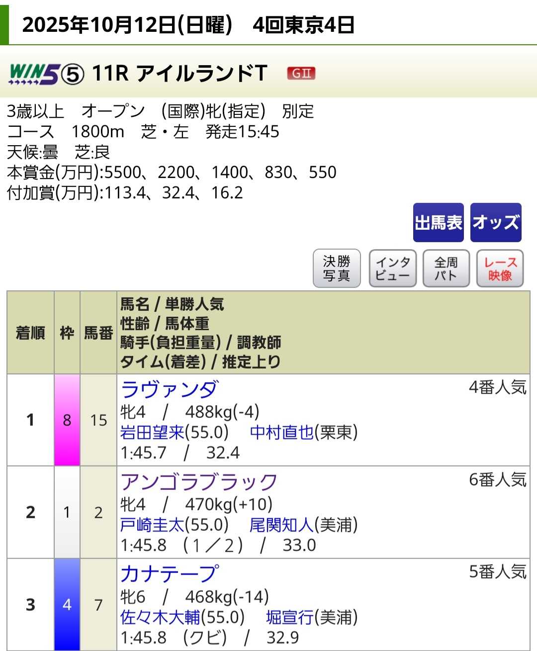 MLB 今日(月)から アメリカンリーグ の 優勝決定シリーズ。 対戦カード は マリナーズ vs ブルージェイス です。 とりあえず、リーグ優勝決定シリーズ にコマを進めた4チームは 各リーグ(各地区)の 優勝チーム。 いわゆる 下克上 はありませんでした。 なんとなく 良かったなぁ と思います。 明日(火)から ナショナルリーグ優勝決定シリーズ。 ドジャーズ の 相手が 決まりました。 昨日(日)カブス が負けてしまい ブルワーズ との対戦です。 今年の ブルワーズ は MLB全体 で 勝率1位。 今年の ドジャース は 対 ブルワーズ で 6戦全敗。 昨年(2024)の ワールドシリーズ より厳しい戦いになるでしょうね。 明日(火)からの 7戦 が 正念場 です。 ただ、ここを勝ち抜ければ 偉業(連覇)に向けての視界は良好。 ドジャーズ は 対 マリナーズ は 3戦3勝・対 ブルージェイズ は 3戦2勝。 とりあえず、アメリカンリーグ は マリナーズ を 応援 しよう。 がんばれ! ドジャーズ!! NPB クライマックスシリーズ 1st は 両リーグとも 2位のチームが2連勝。 とりあえずは ホッ としました。 ただ、タイガース にとっては 嫌な相手 ですね... ベイスターズ。 対戦成績 は 14勝8敗 と大きく勝ち越してはいますが... タイガース打線 は ベイスターズ の 投手陣 には 苦戦 している印象です。 しかも、ベイスターズ って 短期決戦 に強いですからねぇ... なんとなく 嫌な予感 がしちゃいます。 まぁ、日本シリーズ の 相手も ホークス だと 何となく 勝てそうにない... ホークス も 短期決戦 に 強い(シーズンも強い)ですから。 それでも、やっぱり パリーグ は ホークス に勝ってもらわないと... 日本シリーズ の 重み がなくなちゃいますから。 ホント、つくづく しょ~もない制度 だよなぁ... CS ってのは。 ドラマ 昨日(日)から ザ・ロイヤルファミリー が始まりました。 ご覧になられましたか?! 僕は あの 半沢直樹(古っ!)以来の 連続ドラマ でした。 (半沢直樹 の 2シリーズ は 観ていません。) 連続ドラマ って 毎週 その時間帯を 拘束 されちゃうじゃないですか。 (僕には 録画 して 観れる時間に見る という 概念 がございません) それが嫌で なかなか「観よう!」とは思えないんですよね。 でも、今回ばかりは テーマが競馬 ですから。 何の迷いもなく「観よう!」と思って 観ちゃいました。 ネタバレ は NG なので 内容には 触れませんが... (皆さん は もう 原作 を読んで 知ってるかな?!) 僕は どっぷり嵌りました。 これから 日曜日 の 夜 が 楽しみです。 是非!! さて、さて... 競馬 アッと言う間に 3連休 & 3日間開催 も 最終日 です。(寂) まぁ、何年も 生きてますので アッと言う間 は 想定内 ですけどね。 土曜日も 日曜日も ダメ でした...(悲) (昨日の振り返りは 後ほど) まぁ、何年も 競馬 をしてますので ダメダメ は 想定内 ですけどね。 初めから 今節 の 楽しみは スワンS でした。 まぁ、だからこそ 土日 の ダメダメ は 痛かったワケですけどね... でも、まぁ、過ぎたことを 悔やんでも 何も生まれませんからね... 反省 は忘れず、教訓 を活かし... 懲りずに メゲずに 楽しもう!!(戒) ただ... 一昨日(土)の サウジアラビアRC は 勝ち馬 を 当ててます。 (馬券 は 低配当の「単勝」を 極少額 だけ... 寒) レベル(精度)を下げれば 対抗馬(1番人気ですが...)も 3着 です。 昨日(日)の アイルランドT だって ◎ 本命(6番人気)は 2着 に 来ています。 レベル(精度)を下げれば 対抗馬(5番人気)も 3着 です。 そうなんですよ、馬券 は 相も変わらず ヘタクソ 過ぎて 怒り すら覚えますが... 予想(妄想)の方は 満更 ではない んですよね。 まぁ、レベル(精度)を下げれば... の話ですが。(恥) でも、気の持ちようですから。 今週(今節)は「狙いは合ってる!」とポジティブに捉えよう!! はい、今、懸命に 自分を自分で 奮い立たせております。(汗) 2025年10月13日(月) スワンS 今週(今節)の 一番の楽しみ がやって来ました。 だからこそ 土日 が 痛い。涙 でも、土曜日の 微々たる恩恵 で 少し 資金 が戻りました。 そこから 少しだけ 昨日(日)に 加算。 残りの 少し を 今日(スワンS)に 加算 出来ます。(淋) 週始め(10/5 夜)から 2馬選択 状態。 その時(10/5 夜)既に 3頭目 も ほぼ確定。 週中(10/8 水)には ほぼ 1択 に。 その時(10/8 水)既に ◎ ○ ▲ が ほぼ確定。 枠順(10/10 朝)を見て 本命 ◎ 対抗 ○ 単穴 ▲ が 決定。 でも、昨日(10/12 昼)になって 新たな 1頭 が...(揺)汗 京都11R スワンS(GⅡ) ◎ ⑦ オフトレイル ○ ⑤ ウインマーベル ▲ ① ランスオブカオス ☆ ⑩ アルテベローチェ △ ⑧ ワールドエンド △ ⑭ アドマイヤズーム <馬券> 「単 勝 ⑦」 「馬 連 ⑦-①⑤⑧⑩⑭」 「三連複 ⑦-①⑤⑩」 「単 勝 ⑩」 ◎ オフトレイル 京都(2.3.1.0)・1400m(0.1.1.0) スワンS で 必要な 強烈な末脚 の持ち主。 そして 鞍上 が 菅原明騎手 。 以前にも触れたことがありますが... あくまでも 僕の中の イメージ だけではありますが... 京都・阪神 の 1400m は 菅原明騎手 が 良いのです。 2年前 と 3年前 も ララクリスティーヌ で 連続2着。 (
