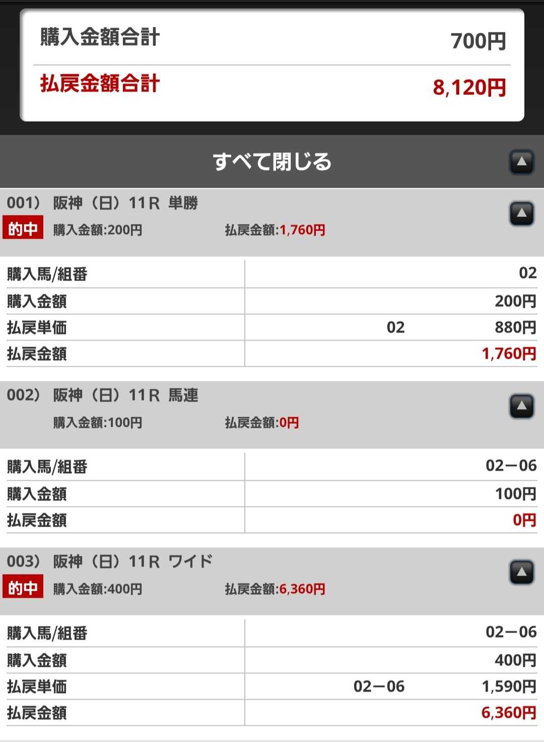 「単勝」と「ワイド」で「偶然の幸運」を頂戴しました。
