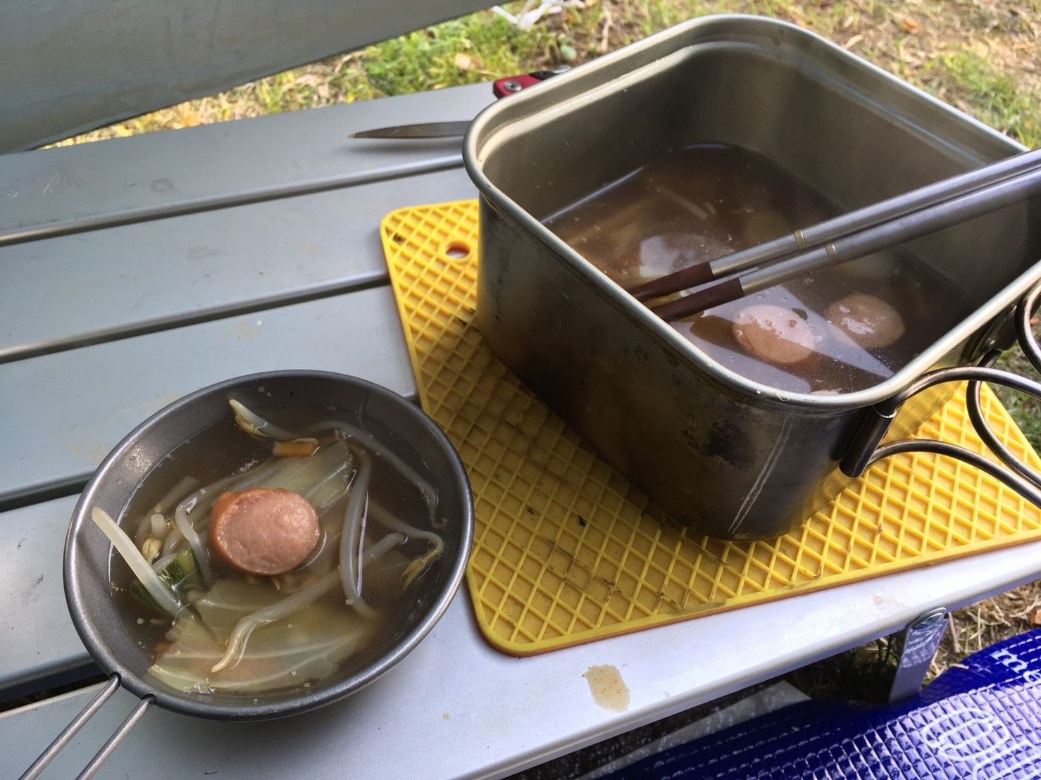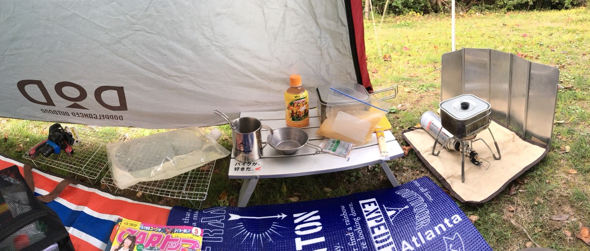 向かうは三重県志摩の「志摩観光農園キャンプ場」。 英虞湾の岬に位置する、海が間近のキャンプ場です。 ![]() 到着! 早速受け付けをし、サイトへ。 ホームページでは海が見えるバイクサイトがあるということで 期待していましたが、ここからは見えません・・・(;´Д`) この日は風が強かったので、木に囲まれているこのサイトにしてもらいました。 結果、これがすごく助かりました。 ここはバイク用料金が設定されているキャンプ場で、1人1500円です。 シャワーを使わなければ500円割引だそうです。 ![]() こちらがそのシャワールーム。 コイン式で無いので、ゆっくりできます。 エアコン完備で暖かい! 今夜はここで寝たいくらいです。笑 ![]() 手前の白いテントはグランピング用の常設テント。 その奥もバイクサイトで、そこからはぎりぎり海が見えるのかな? こちらのほうが日当たりもよく、開放的ですね! ただし、風が強い日は吹きさらしでしょうね・・・。 ![]() さて設営にかかりましょ。 まずはレジャーシートに荷物降ろして、ライディングブーツから動きやすい靴へ履き替えます。 ![]() 設営完了! 今日もいつものDODのライダーズワンポールテントです。 若干角の縫い目がほつれてきました・・・! 耐久性が少し心配です。 【送料無料】DOD(ディーオーディー) ライダーズワンポールテント バイク乗り最適キャンプテント T1-442【SMTB】 ![]() ひさしを展開して、お店をオープンさせます。笑 ポールを利用してシュラフを干しておきます。なんとなく、気持ちよく寝れそうでしょ? 今日は買出しもなしでまっすぐキャンプ場に来たので、余裕があります。 早速散策するとしましょう。 ![]() 海が近いこのキャンプ場、サイトから降りればすぐビーチ(?)があります。 もうほとんどプライベートビーチといってもいいですね! こりゃ、海水浴シーズンにはファミリーで混みあいそうです。 ![]() お天気もいいので、外でのんびりしましょう。 お気に入りのヘリノックスだして、お湯沸かしてコーヒータイム。 暇つぶしに買ってきたCAR TOPを読みながら昼寝。笑 ヘリノックス Helinox グランドチェア BK [Ground Chair][ブラック][2018年春夏新作] ![]() 風が強く、日が落ちると結構寒かったのでテント内へ移動します。 結局前室開放してるので風がビュービュー入ってくるんですが(;´Д`) ともかく、「何もしないという贅沢」を楽しみます。 これがソロキャンプの魅力ですねぇ。 ![]() さぁ晩ごはんの準備をしましょ。 今日は食料を全てクーラバッグに持参してきましたので、その中身一覧。 野菜、ソーセージなど要冷蔵のものも入ってます。 コンビニ野菜がいろんな野菜が入っていて便利。食べきりサイズなのも◎。 ちょっと贅沢ということでソーセージも持っていきます。 クーラーバッグ サーモス(thermos) ソフトクーラー REF-005 約5L ( 保冷バッグ クーラーボックス 冷蔵ボックス 折りたたみ コンパクト収納 小型 お弁当袋 ランチバッグ ) 【5000円以上送料無料】 サーモスの保温力はすごいですね。 保冷材があれば、要冷蔵の食材でも持ち運びOK! ![]() シェルパ斉藤さんの本を参考に、今日はミソパスタにします。 味付けはなんとタルタルソースとインスタントみそ汁! パスタを長時間茹でなくても済む裏技「水浸け」をテストします。 シェルパ斉藤の元祖ワンバーナークッキング [ 斉藤政喜 ] ジップロック等にパスタと水をいれ、1時間ほど放置するだけ。 詳しくは↑参照! ![]() 本来は茹でたパスタの水切って、タルタルと味噌をあえて食べるレシピですが、 寒かったのでスープパスタにしようと、水を多めに入れました。 で、野菜も採りたかったのでコンビニ野菜と、あとソーセージも投入。 その結果。。 ・・・いろいろ入れすぎて味が薄い。笑 初挑戦でいきなりアレンジするもんじゃないですねぇ。 パスタと言うより、鍋ラーメンみたいになってます。 それでも結構美味しかったので結果オーライ! ![]() 今日のキッチン。 ライダーズワンポールテントの広い前室だと、あれこれたくさんテーブルを広げることが出来るので ヘリノックスに座って食事するより、地べたに座ったほうが楽だと言うことに気がつきました。 ダイソーのサブテーブルは今回も2台フル稼働。 大定番になりそうなほど使いやすいです。 22時ごろ就寝。 夜でも少し風が出ていて、体感的にも結構寒い! 今日は全国的に気温が低く、岐阜でも積雪があったそう。 4月なのにこれだけ寒いとは思いませんでした。 今夜はお風呂にも浸かれていないので、身体が冷えたまま。 この時期、温泉は欠かせないんだなぁと痛感・・・! カイロを全部使ってもまだ寒いです。 今まで寒くて寝れなかったことはあまり無いのですが、この日は夜中に何回か起きてしまいました。 保温効果を高めようとシュラフの上にブランケットをかけていましたが ためしにシュラフの中に入れてインナーとして使ってみたら、こちらのほうが暖かい! おかげで朝までぐっすり寝れました。 ![]() モンベラ