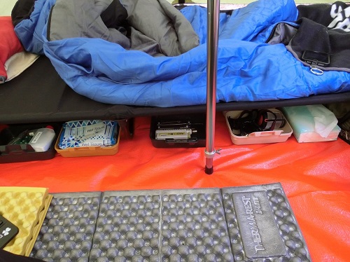 自分の「買ってよかったキャンプ道具ランキング」でずっと1位だったのが ヘリノックスのグランドチェア。 コンパクトな収納と、抜群の座り心地が最高にお気に入りで コレなしのキャンプツーリングは考えられませんでした。 それが最近、ちょっとしたキャンプスタイルの変化で 「1位」から「まったく使わなくなったもの」にまで暴落しました。 なにがグランドチェアを追いやったのか!? というお話です。 ![]() Helinox(ヘリノックス) ヘリノックスグランドチェア(Helinox Ground Chair Camping Chair):ブラック(Black)【並行輸入品】 参考:小!軽!快適!ヘリノックス:グランドチェア >> コットの登場 事の始まりは、DODのバッグインベッド CB1-510Tを買って使い始めたこと。 コット、いわゆるキャンプ用ベッドです。 ![]() 「え?イスとコットじゃ、使用する場面が全く違うじゃないか!」 と思うかもしれませんが、コットってそのまま座るのにちょうど良い低さなんですよ。 まさにグランドチェアと同じで、ロースタイルのイスになるんです。 座り心地はグランドチェアに負けず劣らずで良いし、しかもそのまま横になって ゴロゴロすることも出来ます。イスにもベッドにもなって一石二鳥。 コット、最強じゃないか! イスって、座ってウトウトは出来るんだけど、そのまま寝れるかというと眠れません。 あ、コットって結構使えるんだなぁ、という印象でした。 >> お座敷スタイル それに加えて、お座敷スタイルが自分の当たり前になったのが大きいです。 食事を作ったり食べたりするときって、大体前かがみになりますよね。 後ろに大きくもたれるヘリノックス系のイスは、食事のシーンではちょっと使いにくいんです。 それでもグランドチェアは、あぐらをかいて座れる低さなので いつもあぐらかいて食事していました。 あるとき、イスから少し遠い位置にある道具をとろうとして、何度もイスから降りたり座ったりをしていて なんかコレって面倒だよなぁ、と試しに地べたに直接座ってみたら、コレがスゲー楽なんです。 グランドシート敷いておけば、床に荷物置き放題なのでスペースを広く使えるし。 キャプテンスタッグのアルミロールテーブルがいつもよりちょうど良い高さに感じるし。 「あれ!?地面に座るってこんな楽なんだ?」 と、お座敷スタイルの楽さに気が付いた瞬間でした。 いつの間にか、地べた < ヘリノックス という偏見があったのだと思います。 >> Zライト ソルの凄さに改めて気づく 最後の一押しは、サーマレストのZライト ソルでした。 お座敷スタイルにするか否か、いつも迷っていました。 「いくら地べたに座るのが楽でも、ゴツゴツした地面だとお尻痛くなるしなぁ」 「地面冷えるからあんまり座りたくないなー」 「座布団とか持って行けばいいけど、荷物増やしたくないし・・・」 うーむ(´_`) ![]() ・・・あれ?もしかしてZライトソルって座布団代わりになる? いや、長くて邪魔になるか・・・? でも、エアマットと違って地面に直接置いても破れないし、凹凸で座り心地いいし、 断熱効果もすごいし、簡単に折りたためるからちょうど良いサイズに畳めば・・・? ![]() 座布団になるやん(゚∀゚)!! このとき、頭の中でパズルが組みあがったときのような感覚を覚えました。 コットとマットがあれば、お座敷スタイルにイスは全く要らないじゃないか!! なぜ今まで、こんな単純なことに気が付かなかったのだろう。 この瞬間から、グランドチェアは必需品→贅沢品に変わったのでした。 そう考えると、小さなソロテントの中ではグランドチェアすら邪魔に思えてきます。 物は使い方によって、ずいぶんと印象が変わるもんなんだなぁ・・・。 今ではお座敷スタイル以外考えられなくなったお話でした。 ヘリノックスは、また夏にお世話になるとしましょ。 >> おまけ コットって、スゲー使えるアイテムなんですよね。 座ってよし、寝てよしはもちろんですが ![]() コットの下に小物を置いて仕舞っておけるのが最高に便利。 まさかキャンプでベッド下収納が使えるなんて、思わぬ副産物でした。 メガネやスマホ、マルチツールやヘッドライト、ツーリングマップルやティッシュなどなど 置き場所に悩む小物は結構多いもんです。 どうぞご参考に~。 にほんブログ村 ![]() 人気ブログランキング