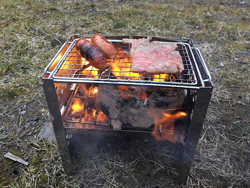 よーやく、今年一発目のバイクでのキャンプを行ってまいりました。 キャンプ自体、1月に車で行って以来ぶりですね。 実は前日まで、花粉症の影響なのか熱を出してしまい、寝込んでおりましたが 当日には回復してきたので決行となりました。 ![]() 熱に苦しみながらも準備だけはバッチリしてあるCB。ガレージはホント便利。 ということで、出発! もう3月も終わりですが、このところは寒の戻りなのか結構冷えますね。 念のため持ってきた電熱ウェア&グローブが役に立ちました。 着込まずに暖かくて、荷物も嵩張らない電熱アイテムはキャンツーにも向いてますよね。 【在庫あり】KOMINE コミネ 電熱ウェア EK-106 エレクトリックインナージャケット12V サイズ:L マジで電熱アイテムは神。 バイクに乗っていながらコタツにもぐっているかのような暖かさ。 コレ着とけば、上はいつもの春秋用ジャケットでもOK! >> 今日のキャンプ場 ![]() ということで、本日のキャンプ場へ到着~。 今回は奈良県下北山にある河川敷キャンプ場です。 実は、もともとさらに南にある「おくとろ公園キャンプ場」に行くつもりだったのですが どうやら土日は予約業務やっていないようで、現地で飛び込みで泊まらせてもらう予定でした。 で、道中にあるお気に入りのキャンプ場、「下北山スポーツ公園キャンプ場」を道から覗くと フリーサイトがガラガラだったので、もしや今日はガラガラ?と思い飛び込みで行くと「満員」と(;´Д`) 残念だな~、と帰ろうとしたら、受付のお姉さんが 「でしたら、近くによい場所がありますよ」 と教えてもらったのがこのキャンプ場。 ![]() 名前は「きなりの郷 河川敷キャンプ場」というそうです。 あまりキャンプ場検索でも出てきたことないよなぁ・・・? お値段も高くないし、近くに温泉や買出しできる場所もあるので 予定変更して今日はこちらに泊まることに決定~。 もしかしたら穴場キャンプ場なのかも? 下北山スポーツ公園は満員だと言うのに、すぐ近くのこちらはガラガラでした。 キャンプ場の詳細は、またの機会に・・・。 >> 設営! ![]() ってことで、ちゃちゃっと設営。 風が強く吹くときがあったので念のため張り綱もしときました。 結果的に、翌朝早朝にかなり強く風が吹いていたので張っといて正解でした。 もう新品では手に入らないパンダテント、これが破れたら泣いちゃう・・・。 さてさて、予定より早くキャンプ場に付いたので、晩ごはんまでまったりしましょ。 近くにヤマザキショップへ買い出し行って、温泉いってゆったりしてきました。 やっぱ寒い時期の温泉は最高ですね。とくにここの温泉はヌルヌル&ぬるいでワタシ好み。 今から寒い外で過ごすのが嫌になります。笑 ![]() 温泉の売店でこんなものを発見。じゃばらの果実を使ったリキュールです。 じゃばらって皆さん知ってます? この北山地方でしか取れない非常に希少な柑橘系の果物で、花粉症にすごく効くそうなんです。 ちょうど花粉症で寝込んでいた私にはちょうど良いと思い、1本買ってみました。 で、コレがまためっちゃくちゃすっぱいんです。本当に。 そのまま飲むものとは思えないほどで、まぁこんだけすっぱいと確かに効いてきた気がします。笑 じゃばらというネーミングも、「邪気を払うほどすっぱい」ことから来ているそうですよ。 ちゃんと、アレルギーに効くことも確認されています。でも、すっぱいんです。 何度も言いますが、とにかくすっぱいです! 花粉症に効くという天使のような飲み物のようで、死ぬほどすっぱい悪魔の飲み物です。笑 私が買ったのはお酒のタイプでしたが、ちゃんと↓ソフトドリンクタイプのものもありますよん。 花粉症にお悩みの方は、一度お試しになってみてはいかがでしょ? 北山村 じゃばら果汁 300ml 《あす楽》 日本でこの地方でしか採れないってのも、不思議な果実ですねぇ。 ちなみに北山村は、奈良と三重に囲まれた和歌山県の「飛び地」です。これも日本唯一。 >> 久しぶりに炭火で料理 さて、晩ごはんの準備をしましょ。 今日は、久しぶりにこれらを使います! ![]() CAPTAIN STAGカマド スマートグリル B6型 です。 なんとなく、炭火で焼肉したいなぁと思って持って来ました。 燃料は、ダイソーで売ってる成形炭。この2つはジャストフィットなんですよ。 あとは炭に着火してやれば、着火材に燃え移り勝手に炭が熾せます! なんてお気楽なBBQでしょう! さっそく点火しましょ~。 ![]() シーン・・・・。 あ、あれ? おかしいな・・・まったく着火材から燃え広がる気配が無い。 というか、着火材が燃える元気すらない。 しまったな・・・ずいぶん前に購入して放置していたものだから、湿気ってるのかも(;´Д`) ![]() どーにか頑張って、その辺に落ちていた小枝などを使って火をつけることに成功。 しかし、やっぱり火力はイマイチ・・・。 とりあえずウインナー置いてみたが、あんまりジュージュー言いません。 焼けちゃいるけど、こりゃ雰囲気ないな・・・。 ![]()