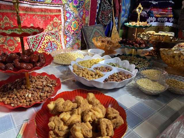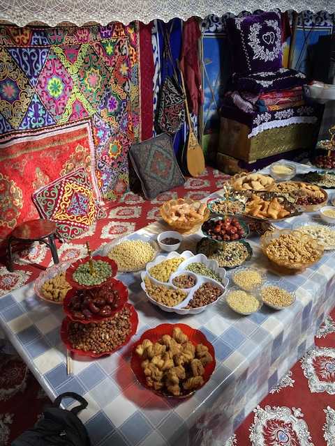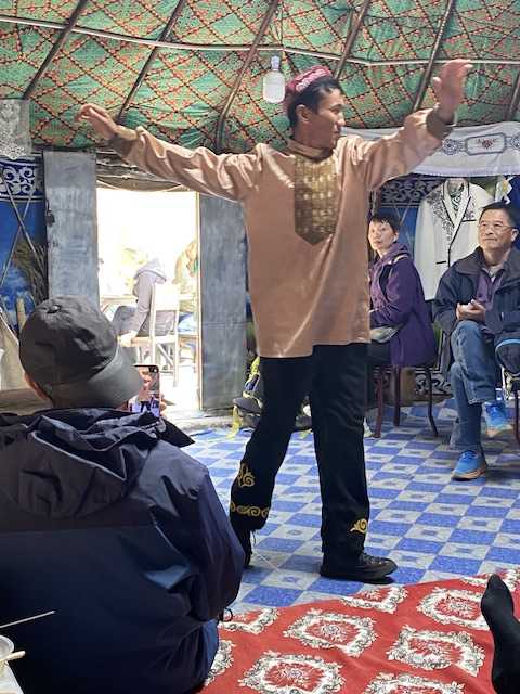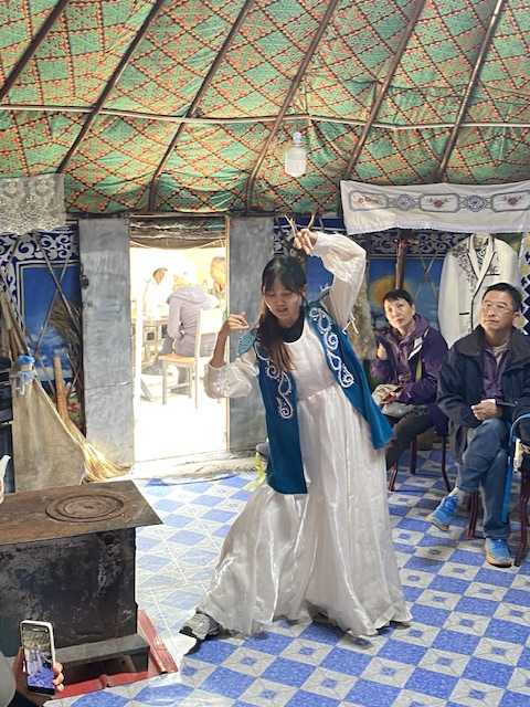 パオのようなテントで伝統料理をいただきました。民族舞踊のサービス付きです。