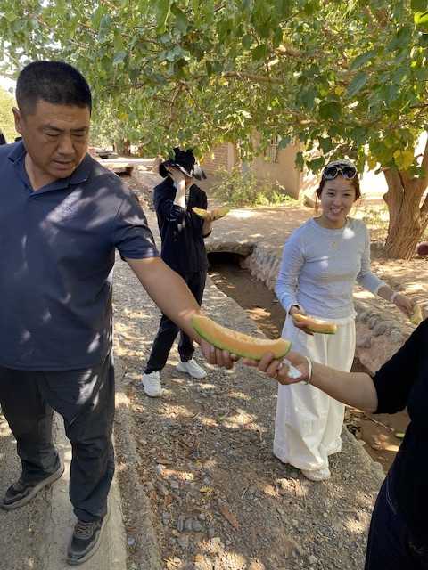 トルファン旅行でツアーバスのガイドさんがくれたメロンが甘くて美味しかったのが印象的でした。
