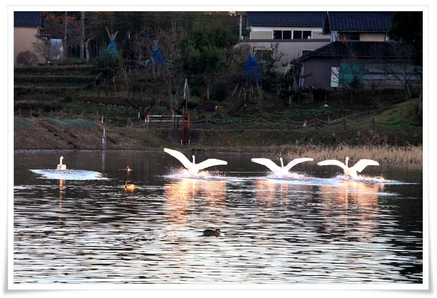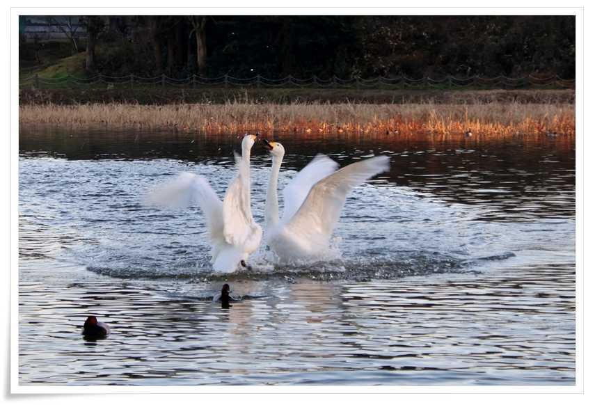 今日のお天気は 今日は日曜日、仕事は休みです 昨夜から少しづつ 今日のお昼ごろが積雪深のピークだったみたい ( アメダスの積雪深 37cm ) その後もチラチラと降ったり止んだりだったけど 心配していたほどの増加ではない様子 その代わり気温が低くて 氷点下になってない時間が一瞬有ったようで、真冬日にはならなかったけど寒かったよ~ 今回の 今夜どのくらい降るのかが問題かな 昨日の続きです 富山まで出かけたついでに ~ 田尻池・Part.2 ~ < 12/19 > ![]() 鳴きながら白鳥が4羽近づいてきて上空を通過 ![]() 大きく旋回して池へ下りてくるようです ![]() まずは先頭の1羽が無事に着水 ![]() 続いて残りの3羽も降りてきました ![]() ハクチョウたちの移動はいつも家族単位での移動なので、この4羽も家族だと思います みんな体は白いので成鳥なのかな ![]() 岸に近い所で餌をもらっていた2羽が、降りてきたハクチョウたちの向かって何か言っているようです ![]() 毎日同じ池で過ごしているから知り合いでしょうか・・・・・・ ![]() 先ほど降りてきた中の2羽がなんだかバタバタし始めたようです ![]() 喧嘩してるんじゃないと思うけど・・・・・・・・ ![]() 別の1羽も加わって追いかけあっこみたいな事になっていたけど 何だったのか分かりません ![]() その後まだ何か言っているような2羽 ![]() 翼を広げて首を伸ばして・・・・・・・ ![]() 今回は喧嘩じゃないような気がするけど 他の場所では喧嘩のように激しく追いかけあっこになっているのも見たことは有ります 何か気に入らない事が有って喧嘩が起きても不思議ではないんだけどね ![]() いつもと違う様子が見られたので悪くは無いんだけどね ![]() どうやら落ち着きを取り戻した様子で 4羽もこちらに向かって近づきてくるようです 今日はここまで、この続きはまた明日ね~ 今日の花音 ![]() 耳をカキカキ・・・・・・ たまにはこんなポーズもアリかな~ いつも最後に貼り付けてたメッセージはこちらの画像は お気に入りの記事を「いいね!」で応援しよう
