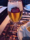 ベルギーと言えば ベルギービール ベルギーワッフル そしてチョコレート ベルギービールは700種以上もあるそうです で...ビールを飲むときは グラスが決められていて そのグラス以外では飲まないそうです 全部を飲んでみるわけには行かないので ほんの数種類飲んでみました 選んだビールはどれも 刺激が少なくまろやかで 口当たりがいいのでついつい飲み過ぎてしまいますね へろへろ~~~ また首都ブリュッセルにはトヨタ自動車が進出していて 300人ほどの日本人が働いているそうです その家族や関連会社を含めると 7,000人弱の日本人がいるとのこと しかもその3分の2が愛知県人だそうですよ ステラのグラス ランビックのグラス ジュピラーのグラス これで一人分のムール貝をつまみに この辺りになるとヘロヘロになり ベルギーワツフルも食べちゃった!
