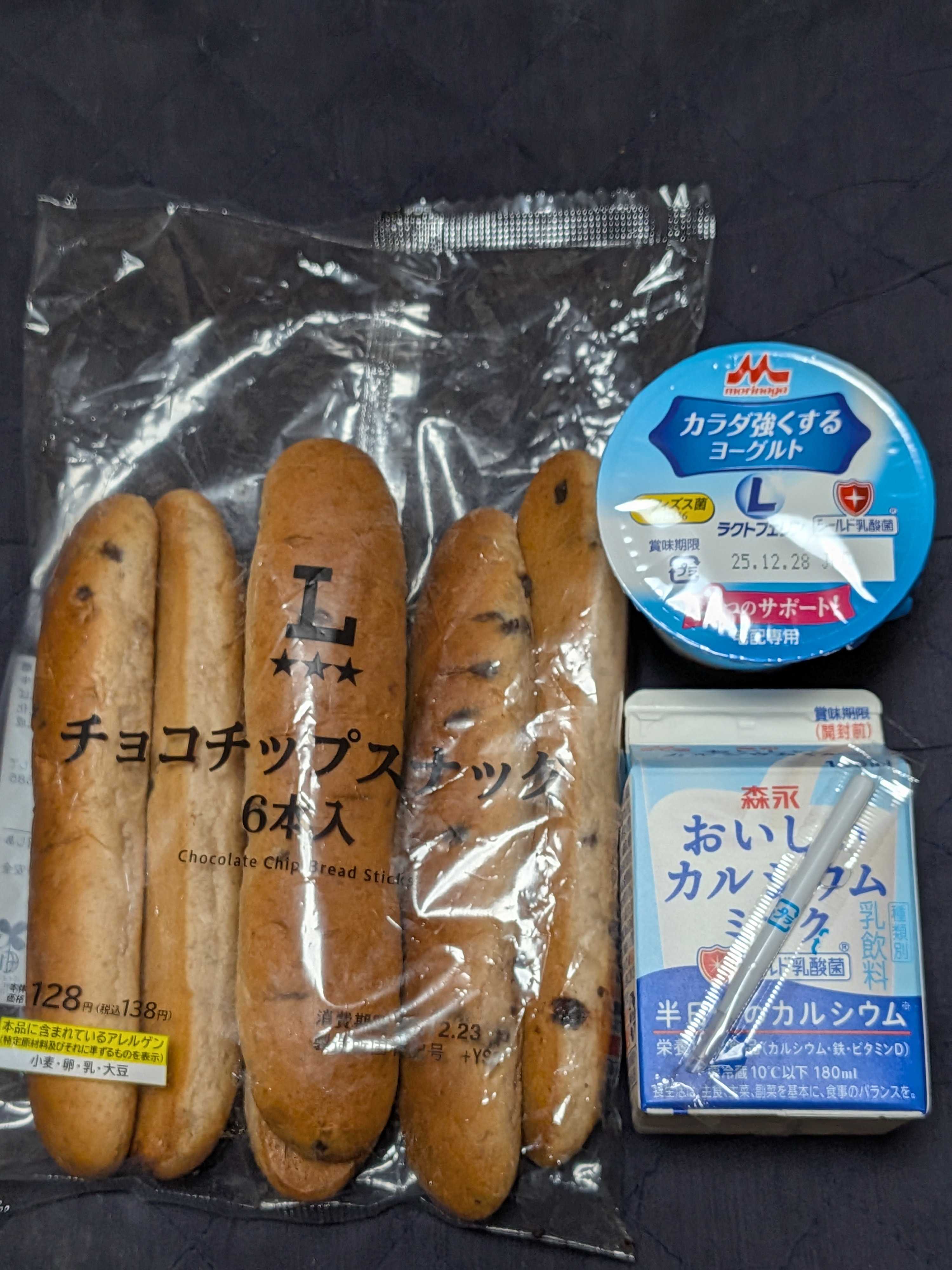 チョコチップスナックパン&ヨーグルト&牛乳