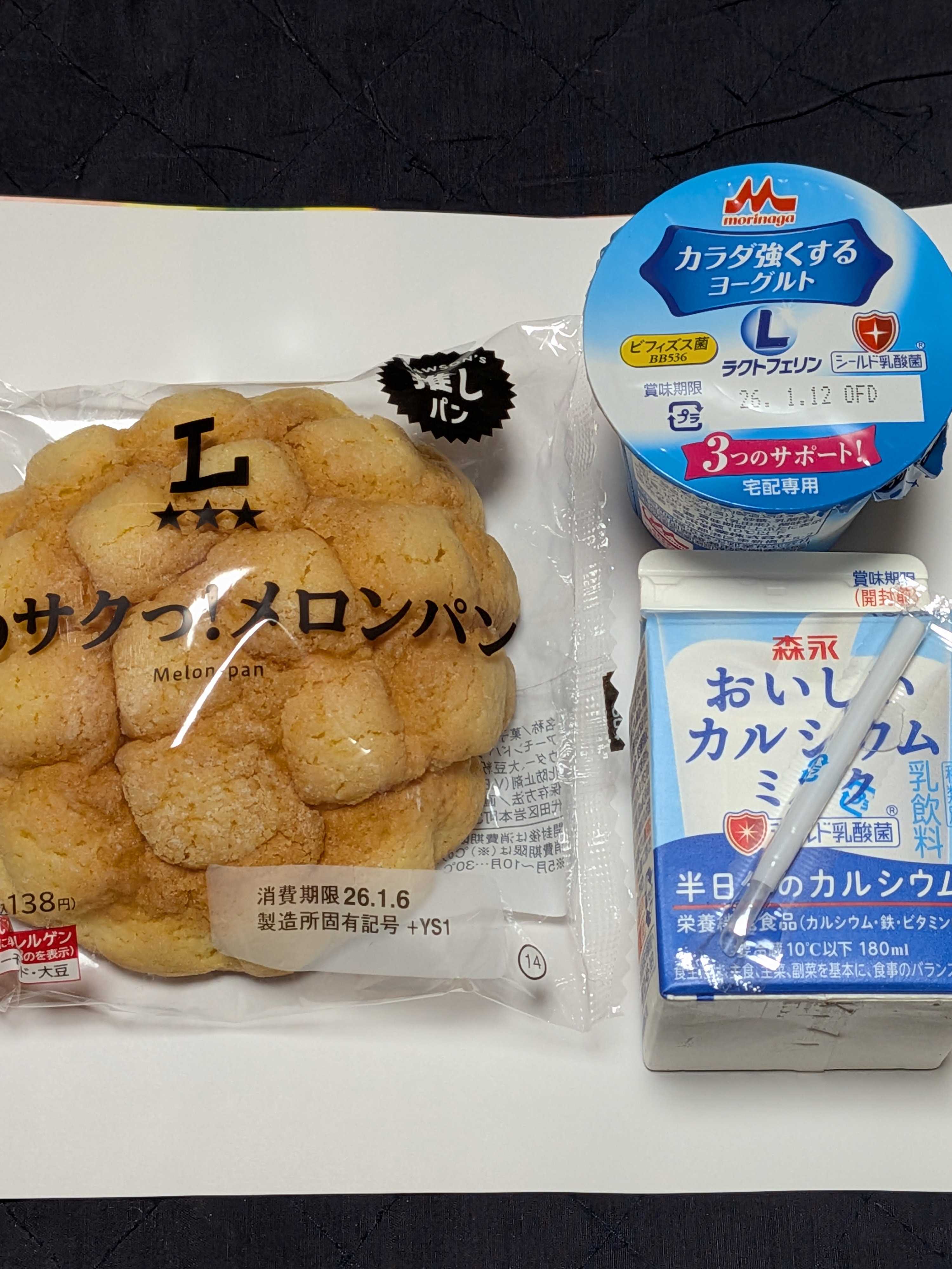 メロンパン&ヨーグルト&牛乳