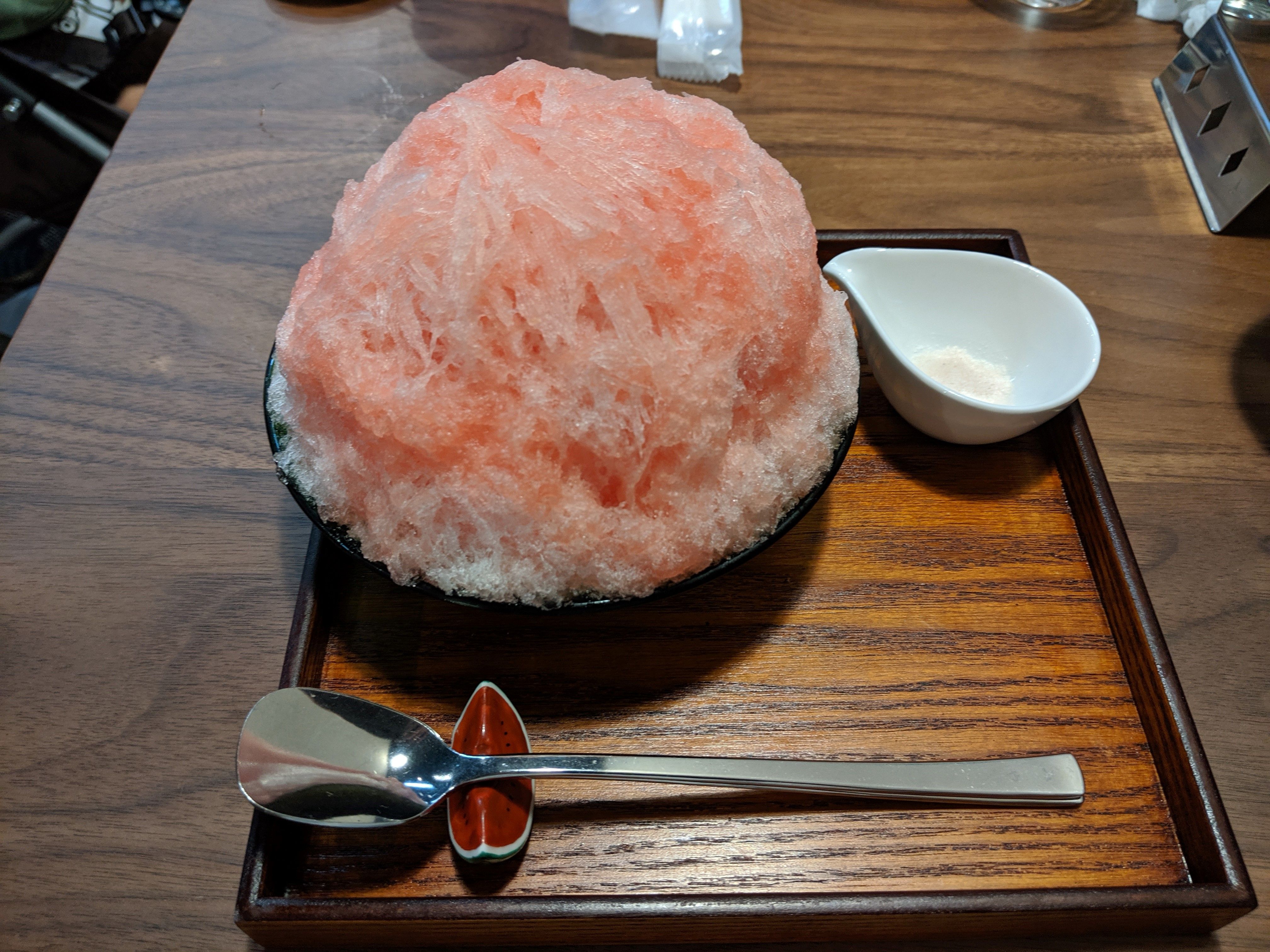 13時前に着いて、お店の前に置いてある予約台帳の13時半~14時のところに名前を書きます。 そして、すぐ近くにある公園で1歳の子供を放牧しながら待ちました。 ![]() 予約時間に戻ってくればいいというスタイルは子連れには本当にありがたい 近くに公園があるというのもありがたい あっという間に時間は過ぎ、店内に。 ![]() レジで注文してから席に。 ベビーカーが横付けできる席に案内してくださいました(感謝)。 頼んだのはピーナッツミルク小盛り(900円+税)とすいか(900円+税)。 まずはピーナッツミルクから~ ![]() 美味しい ふわふわの氷はくちどけ最高 名前通りの味で、とっても濃厚なシロップもめっちゃ好み。 ピーナッツ濃いし、粒々入っているし、掘っても掘っても美味しい 瞬間にふわーーーって溶けて、口の中で味が広がるから食べる度に幸せになれる 来て良かった すいか ![]() これも美味しい すいかよりすいかな味のすいかかき氷。 すいかのざらつくような果肉入りなのがすいかっぽいのかな。 むしろ、すいかより甘いかも。 塩が付いているのも意外といいです(笑) 普段、すいかに塩はかけないけど、かけてみたらあいました。 主人が頼んだ和三盆レモンにミントのエスプーマ(1000円+税)もすごく美味しかったです。 ![]() めっちゃさっぱりでいいお味。 中にグレープフルーツが入っていて柑橘好きの主人にぴったりだったようです 慈げんさんで修業されたってだけあるなぁ~ どれもこれも美味しすぎて最高でした。 公園で沢山走れたおかげで、子供もずっとご機嫌でいられたし また絶対来たいけど、混んできたら子連れは厳しいだろうな でもまた絶対来ようっと。 ごちそうさまでした。 みこや 千葉県千葉市中央区登戸1丁目22−1 https://twitter.com/mikoya_chiba 郵便ポスト 壁付け 可愛い 郵便受け 「ビスケット」 おしゃれ カフェスタイル ナチュラル 大人可愛いポスト お気に入りの記事を「いいね!」で応援しよう
