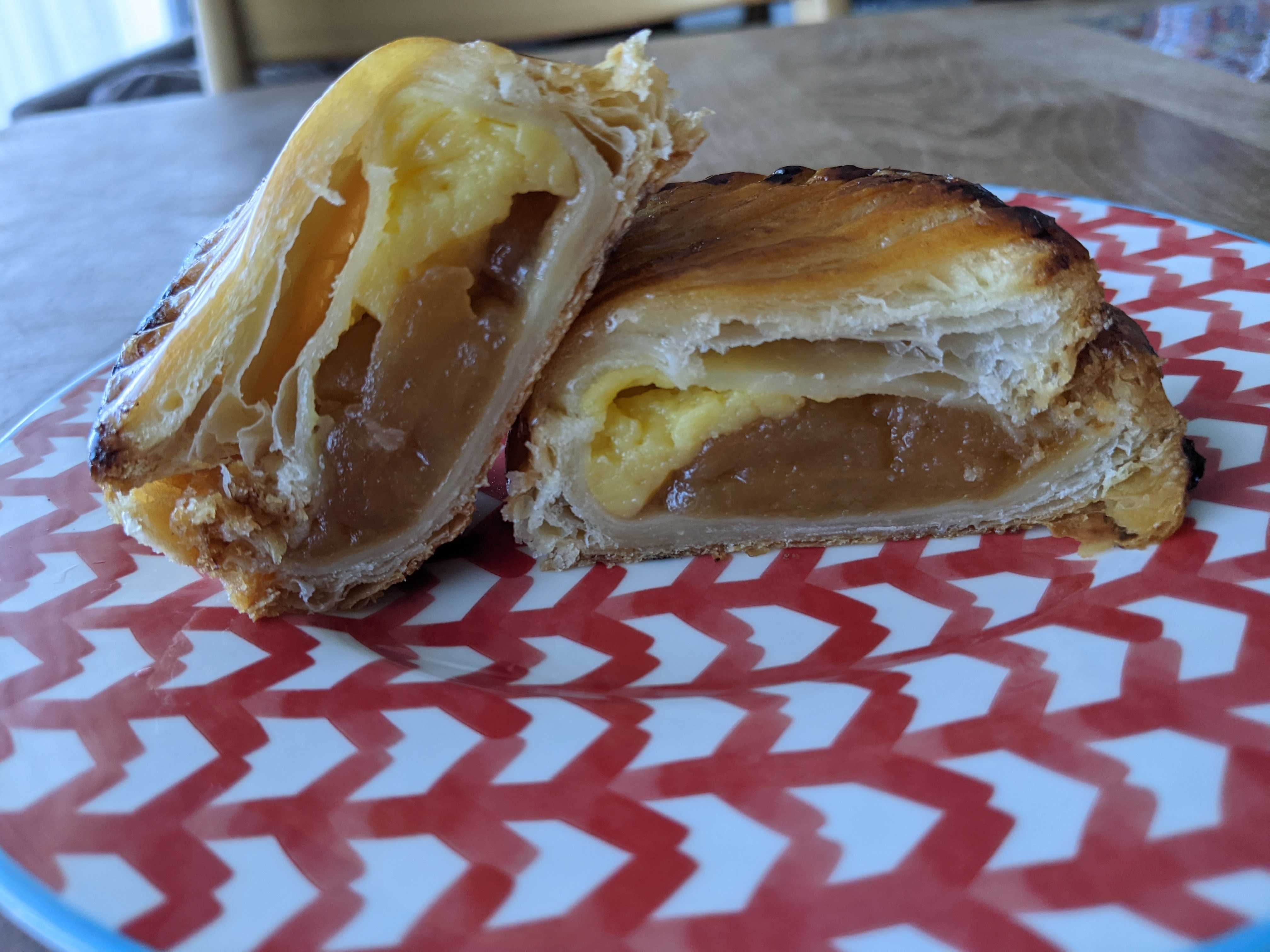 インスタの告知を見てからオンラインショップに行ってもいつも売り切れていて、たぶん瞬殺しているんだと思います。 そんな中毎週火曜日に通販している気がするな~と思ってインスタの告知を見ずに、BASEのオンラインショップを見てみると在庫がある 7月13日に告知が出る前にクリック出来ました 7月26日に発送予定日メールが来て7月31日に発送、今日届きました~ お任せパンセット (3000円+送料) ![]() ![]() 〇湯種食パン(ハーフ×2=ホール) 〇コンプレ・ノア(ハーフ) 〇りんごとクリームチーズフランス 〇ラムレーズン・フランス 〇パンプキンフィグ・デニッシュ 〇ショーソン・オ・ポム 〇発酵バターのクロワッサン の7種類入り 〇湯種食パン ![]() ![]() 自然解凍→スライスしてリベイクしていただきました。 しっとりねちぃっとして、小麦の旨味と甘味の強いパン。 私が湯種に期待する美味しい食感そのもの しっとりねちもちって、大好きな食感 そして噛むと甘い 嫌な甘味じゃなくって、自然な甘味。 美味し 〇パンプキンフィグデニッシュ ![]() 自然解凍→リベイクしていただきました。 南瓜に無花果なんて初めての組み合わせ 香ばしいデニッシュ生地に滑らかカボチャペーストといちじくのコンポート、トッピングのドライフランボワーズ?が酸味を添えてすごく良いバランス。 全体に甘い蜜でコーティングされていて美味しい こんな組み合わせもあるんだな~。 〇ショソン・オ・ポム ![]() ![]() 自然解凍→リベイクしていただきました。 3歳の息子と半分個。 ざっくりした美味しい生地の中にトロリンとしたリンゴと美味しいカスタードクリーム。 やや酸味優位の甘酸っぱくて柔らか。 息子がめちゃくちゃ気にいって「好き」と言っていた。 〇コンプレノア ![]() ![]() 自然解凍→スライスしてリベイクしていただきました。 酸味の有りそうないい香りと思うと、しっとり生地はマイルドな酸味があってクルミが一杯 クルミコリコリ美味しい。 主人も息子も気に入っていました。 〇ラムレーズンフランス ![]() 自然解凍→クリームを抜いてリベイクして挟みなおしていただきました。 フランスパンにラムレーズン入りの軽いけどリッチで滑らか練乳バタークリーム。 ラムがすっごく効いたラムレーズン大人っぽくて美味しい。 ラムレーズンも自家製なのかな クリームの方にもしっかりとラムレーズンの香りと風味が移ってとっても美味しい。 フランスパンは全体しっとり、端っこカリッと、でこれも美味しい。 美味しいものが合わさってより美味しくて好みでした 〇リンゴとクリームチーズフランス ![]() ![]() 自然解凍→リベイクしていただきました。 息子とはんぶんこ。 http://cobotobakery.com/大きめ角切りリンゴとカレンツ一杯の生地にマイルドな酸味のクリームチーズ。 美味しい 息子も気にいってパクパク食べました。 見た目も美しかったクロワッサンは3歳の息子が「クロワッサンすき」と言いながら一人で食べて満足気でした。 なかなか買えなかったのにあっという間に無くなっちゃった ごちそうさまでした。 すっごく美味しかった。 特にデニッシュが秀逸 パン特にデニッシュ系は作りにくそうな夏に、しかも冷凍でこのクオリティはすごいと思います。 また買えるといいなぁ。 coboto bakery(コボトベーカリー) 兵庫県姫路市梅ケ枝町873−1 https://www.instagram.com/cobotobakery/ 冷凍パン生地 シナモンロール shikishima 81g×10 アイシング付_ 夏休み お気に入りの記事を「いいね!」で応援しよう