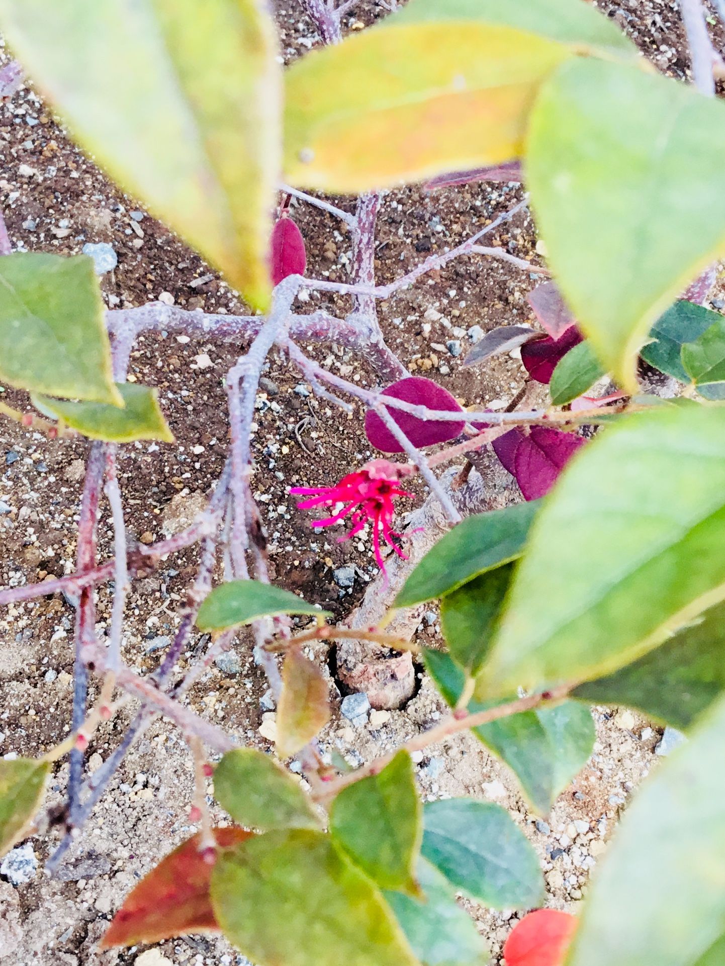 生垣に使われる事が多いそうですが 我が家の銅葉の紅花トキワマンサクは スタンダード仕立て(ツリー仕立て)にしてあります ![]() よく見ると少しだけ花が咲いていました ![]() 濃いピンクで花びらの形も可愛らしいです 調べたところ 基本的には春に花を咲かせるそうですが 秋にも少しだけ咲く場合があるそうです 春の花がとても魅力的なトキワマンサクですが 1年を通しての葉の変化も大変に面白いです 緑葉の白花トキワマンサクも 購入しようかと迷っているところです