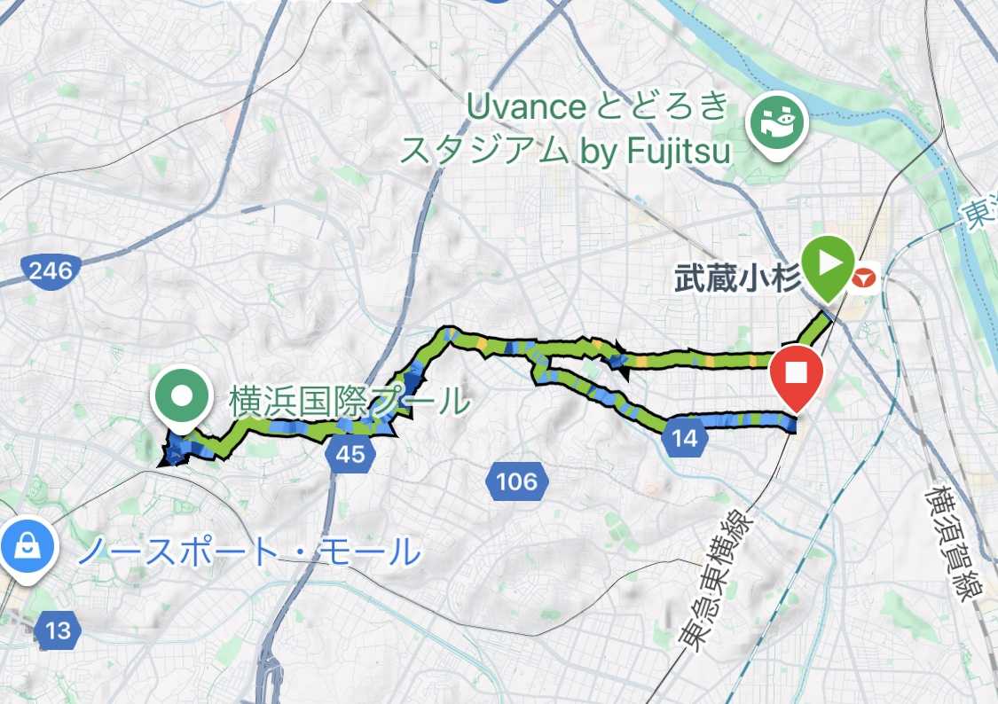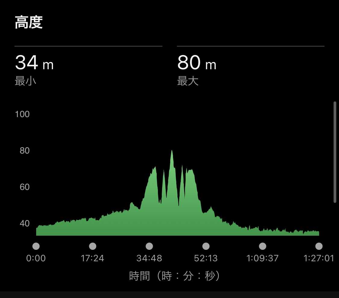 毎週土曜は早起きして駅まで少し歩いて、家に帰って少し休んでから、集合してロードワーク、最後にお昼前からジムでボクシング練習というパターンでした。 が、もう少し時間を効率的に使おうと、駅から走りに行って家に帰ってからボクシングジムに行って、お昼までに完了のパターンにしようかと思いました。 ということで、疲れすぎない程度の距離にあるちょうど良い目的地を検索。片道7.5キロほど先にある横浜国際プールの光の階段なるものが100段ぐらいあるそうで目指してみることにしました。往復15キロほどなので、私にとっては近すぎず遠すぎず。 少し蒸し暑かったですが曇りで暑過ぎず、ペースもあまり落ちることなく到着。 ![]() なるほど、普段階段を使わない人にはハードな感じかもしれません。 真ん中だけでなく、左右にも斜めに走っている階段があるので、それぞれを往復しときました。 真ん中は登り切ったところに小さな丘があります。 ![]() 左側は登ってからさらにプール?の方に行くルートに階段がもう少しあり。 ![]() 右側は逆に階段手前の歩道橋の下に降りる階段がありました。 ![]() で、これらを上り下りするとこんな感じ。段数は数えませんでしたが、ダッシュではなく一段ずつランニングのペースで登ったので、それほど厳しい感じはありませんでした。10往復ぐらいダッシュしたら結構きそうですかね。 ![]() 階段あとは粛々ともどり、こんな感じの15キロほど。 ![]() ![]() 帰りの方が楽な気がしましたが、やはり下り基調だったようです。 東京都内は坂道が結構あるので、坂や階段で鍛えるべくまた調べて行ってみよう。 大江戸坂道探訪 東京の坂にひそむ歴史の謎と不思議に迫る (朝日文庫) [ 山野勝 ] 週刊現代別冊 週刊現代プレミアム 2021Vol.1 完全保存版 坂道と歴史で辿る 東京・裏道さんぽ (講談社 MOOK) [ 週刊現代 ] TOKYO坂道散歩なび 選りすぐり18コース 坂と街のヒミツを楽しむ本!【電子書籍】[ 坂の街研究会 ] 東京ハイキング案内 崖線、坂道、丘陵、河川、暗渠、埋立地、江戸三十三観音を歩く【1000円以上送料無料】 お気に入りの記事を「いいね!」で応援しよう