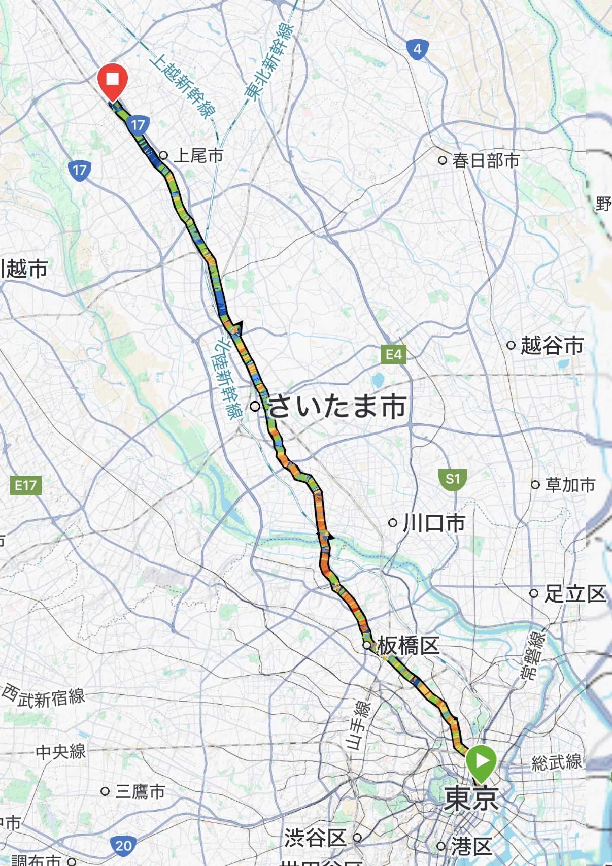 3連休の中日。気候も涼しくていい感じになってきたので、超久しぶりに遠出してランしてみることにしました。 そして今回から中山道にチャレンジ。日本橋から長野とかの山の方を抜けて京都に行くルートですね。東海道よりも距離長め、難所多めと聞いております。いつ終了するものか分かりませんが、また少しずつ進んでみます。 はい、スタートは日本橋。 ![]() 神田方面へ国道17号を進み神田明神前を通り過ぎます。 ![]() さらに進むと本当は行ってたかもしれない、と思ったこともある赤門。ブラタモリでも加賀藩邸跡として紹介されてましたね。確かに瓦と白壁が金沢城っぽいかも。 ![]() ずっと17号を進んで巣鴨方面へ。巣鴨の商店街の手前で徳川慶喜屋敷跡がありました。知らなかった。 ![]() ここから巣鴨の商店街の方に逸れるのが中山道。巣鴨も中山道の途中だったとはこれまた知らなかった。 ![]() 淡々と進んで板橋宿に入りかけたところで、地図見たら近藤勇、土方歳三、永倉新八の墓なるゾーンがあることに気づき少し寄り道。 ![]() ![]() ![]() ![]() こんなところにあるとはこれまた知らなかった。 一つ目の板橋宿に到着。ここまでおおよそ10キロぐらい。ここも細い道を進みます。 ![]() これまた宇喜多秀家の墓があるとのことでしたが、朝早くてお寺入れず。 ![]() 板橋宿は結構長かったです。 ![]() ![]() ![]() 本陣、脇本陣跡を過ぎて板橋に到着。ここが板の橋だったから板橋になったんでしょうね。今はコンクリですが。 ![]() 縁切榎なる縁を切っちゃうらしきところはサッと通り過ぎました。 ![]() ずっと進んで志村の一里塚。両サイドにちゃんとありました。 ![]() 大山道と練馬を通って川越街道に行く分岐点。 ![]() 板橋から戸田に至る途中のこの清水坂は最初の難所だったそうです。そんなにキツくなかったけど。 ![]() そして荒川を渡って戸田へ。 ![]() さらに戸田を抜けて蕨へ。 2番目の蕨宿に到着。板橋宿から9キロぐらい。 ![]() ![]() ![]() ![]() 蕨宿は立派な本陣跡はありましたが、他に見所をあまり見つけられませんでした。 蕨宿の次の辻の一里塚。 ![]() 蕨宿から5キロぐらいで3番目の浦和宿に到着。 ![]() この市場のおじさんの像の道を挟んだ向かいに本陣跡があったようですが見逃してしまいました。 ![]() はい、浦和といえばやはりこれですかね。 ![]() 浦和宿を抜けて6キロぐらいで次の大宮宿になります。武蔵国の一宮である氷川神社のある宿場町。 ![]() 栄えまくってもう宿場町の名残を見つけられず。 ![]() また大山道への分岐。 ![]() たまに中山道標識あり。 ![]() 上尾に入ると先日テレビでみたスタカレーのお店はやっぱり人が並んでました。 ![]() 大宮宿から8キロぐらいで上尾宿。この神社の向かいに本陣跡があったそうですが、痕跡見つけられず。 ![]() ![]() ![]() ![]() 上尾もあまり見所見つけられませんでした。 次の桶川宿までは4キロぐらい。ですが、結構疲れちゃって、脚の筋肉も疲労感が強くなって歩いたり走ったりになってなんとか到着。 ![]() ![]() ![]() ![]() ![]() ![]() ![]() ![]() ![]() ![]() 桶川宿は古い建物も数件保存してあって雰囲気はそれなりにありました。ここでちょうどお昼12時ぐらいで、もうちょっと頑張って次の鴻巣宿まで行こうかと思いましたが、8キロぐらいの距離を快適に進むことができる気がしなくて早めに帰宅することにしました。 ![]() 桶川駅から電車一本で楽々。時間はかかるけど。 今回はこんな感じで、板橋、蕨、浦和、大宮、上尾、桶川と六花の宿場町を進むことができました。43キロぐらい。本当は50以上行きたかったのですが、気力体力及ばず。 ![]() ![]() アップダウンはあまりなかった印象ですが、後半は緩いとはいえ登り基調だったのだとするとあの疲労感はやや納得です。 また、いつになるかわかりませんが、続きを頑張って進もうと思います。 ちゃんと歩けるとの本もあるので、ご興味あればガイド片手に楽しくゆったりと旅を楽しまれるのも良いかもしれません。 ちゃんと歩ける中山道六十九次 東 江戸日本橋・・・薮原宿 [ 八木牧夫 ] ちゃんと歩ける中山道六十九次 西 薮原宿・・・京三条大橋 [ 八木牧夫 ] お気に入りの記事を「いいね!」で応援しよう