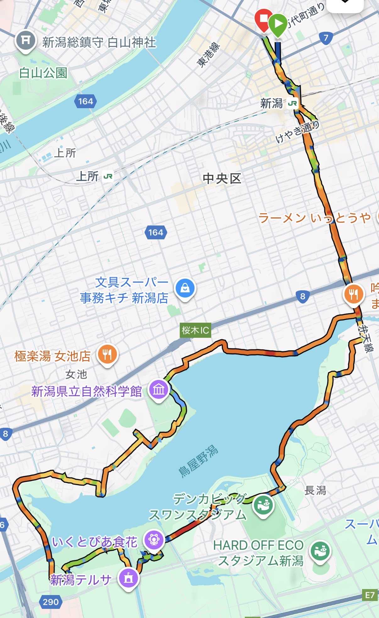 どこかにビューンで決まった行き先が新潟。 数年前にも行きましたが、食べ物も美味しくてまた行きたいねとなってたので楽しく旅行。 前回は雪の中新潟島をまわりましたが、今回は別コースを探して鳥屋野潟を見つけたのでそちらを回ってきました。 新潟駅はどんどん周りも中も改修されてる気がします。 ![]() 駅からまっすぐ2キロぐらい?進んだら鳥屋野潟にかかる弁天橋に到着。夕日がきれいです。 ![]() ![]() 対岸にビッグスワンが見えますね。2002日韓ワールドカップのアイルランド対カメルーン戦を見にきた記憶が懐かしいです。 ![]() ![]() ![]() 北側は一部は公園でしたが潟周りは車道が多く、南側に来ると大きな公園となってランにもいい感じ。 ![]() ![]() 気温がやはり少し低めなので紅葉も進んでました。 ![]() ![]() そうこうしているうちに陽が落ちて、キラキラマーケットのとこにあるイルミネーションがとても綺麗でした。 ![]() ![]() 近くにあるビッグスワンも同じくカラフル。 ![]() ![]() ![]() 鳥屋野を挟んで新潟の中心部を眺めると、水面にも映り込んでいてなかなか良かったです。 ![]() ![]() ![]() またまっすぐ戻って駅に着くと、ちょっとしたイルミネーション。 ![]() そのあとは人気の居酒屋さんで新潟の食を堪能しました。 こんな感じで14キロちょい。 ![]() 涼しくて走りやすかったからか、vo2maxも一個だけあがりました。 ![]() 気温一桁台と少し寒かったのでグローブ持参してて良かった。 エルドレッソのこのグローブは人差し指と親指が出せる仕組みになってるので、スマホ操作もラクラクでおすすめです。 ELDORESO エルドレッソ Premium Gloves E7904225 メンズ・レディース ランニンググローブ 手袋 手ぶくろ インナーグローブ インナー手袋 冬 防風 防寒 おしゃれ スマホ対応 滑り止め トレイルランニング トレラン マラソン ジョギング 自転車 お気に入りの記事を「いいね!」で応援しよう