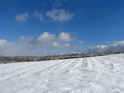 キラキラ、雪の真っ白が・・その白がキャベツ畑とは^^今年も、いつまでこの風景が、楽しめるのでしょうか!花とハーブとグルメの宿シューレビュー