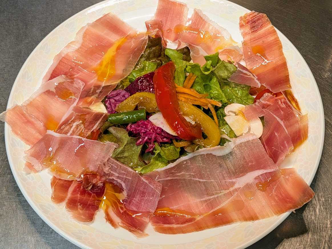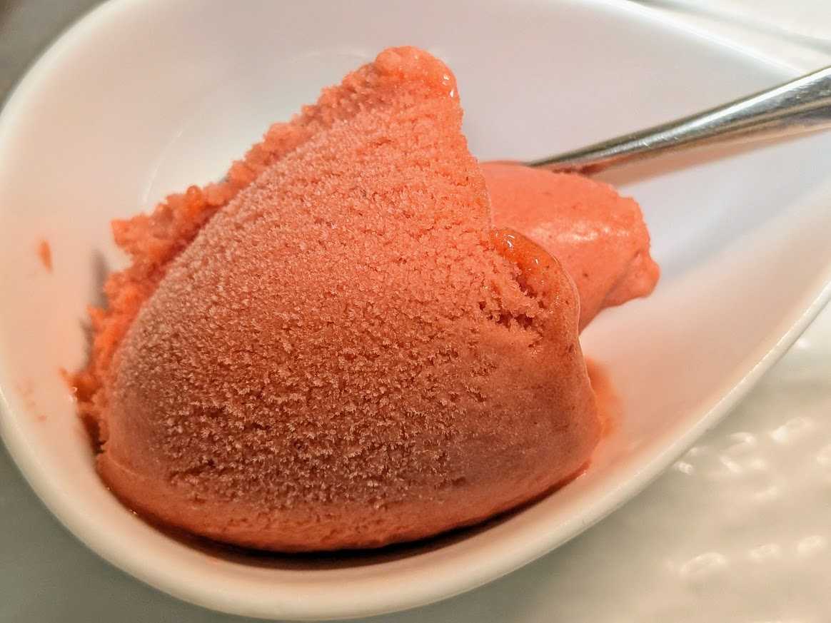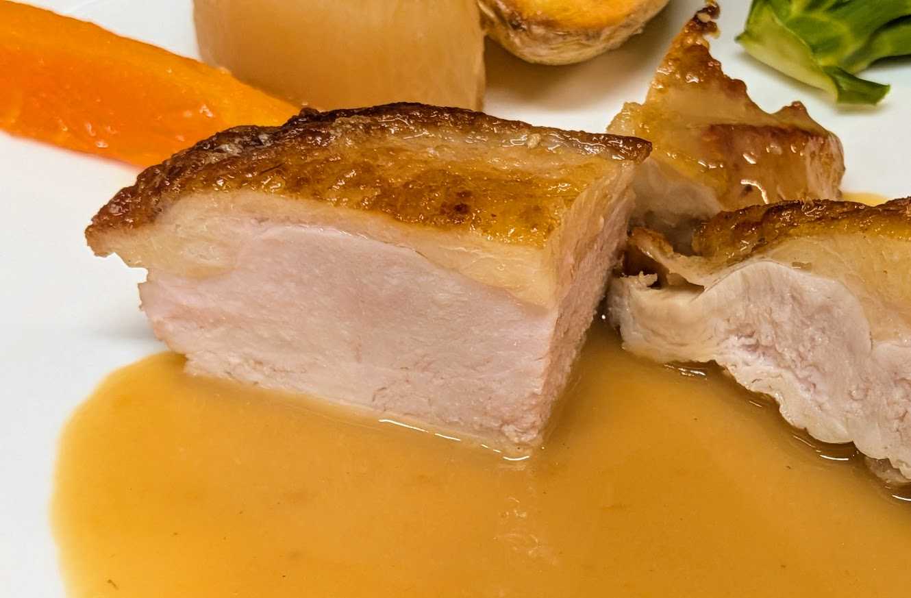 Cinq au pied,Menu Avril et Mai 2024 サンク・オ・ピエ、4月5月のコース \8800 4月7日より5月末頃まで ご予約限定コースです 3日前までにご予約ください Prosciutto KRAST BORA avec Salade スロヴェニア産生ハム、クラス・ボラ社、サラダ添え Foie gras chaud et petit risotte de petit pois de France フォアグラのソテー、フランス産青豆の小さなリゾット添え Sopupe de poissons provencaux 南仏風魚のスープ Poisson du jour poelee jus de Plourde au thym et Beurre aux Algue de mer 本日の白身魚のポワレ、タイム風味のアサリのジュとアオサノリの海藻バター Filet de Pintade poelee au vinaigre de vin de champagne 国産ホロホロ鳥の胸肉のポワレ、シャンパーニュ・ヴィネガー風味 CAKE aux avricots Sorbet de fraises Mousse au chocolat Callebaut ドライアプリコットのパウンドケーキ フランス産イチゴのソルベ ベルギー産カレボー社のチョコレートのムース Cafe de SAKAMOTO pour Menu Avril et Mai ou the , 2pains さかもとこーひーの4月5月のコースブレンド又は紅茶、2種のパン ![]() Prosciutto KRAST BORA avec Salade スロヴェニア産生ハム、クラス・ボラ社、サラダ添え 前菜のスロヴェニア産生ハムです。生ハムは薄く切るのですごい量に見えますね! ![]() まずはこうやって生ハムを客席まで持っていってお見せすようにしています。まぁ、プレゼンも味のうちですよね!これには、、、 ![]() Vermentino di Sardegna 2024 Smeralda ヴェルメンティーノ・ディ・サルディーニャ、スメラルダ 生ハムに合わせるワインは意外に難しいんですが、、、今回の生ハムの産地スロヴェニアはイタリアの隣国なので、イタリア、サルディーニャのワインです。ヴェルメンティーノ種100%、若い辛口でブドウの香りとミネラル感、微かな塩分とほんのり感じる苦みが、生ハムを引き立てますね! ![]() Foie gras chaud et petit risotte de petit pois de France フォアグラのソテー、フランス産青豆の小さなリゾット添え 温前菜です。フランス産の小粒のグリーンピースは甘味があって美味いです。リゾットにするとフォアグラとの相性もばっちりですよ!バルサミコのクリームソースも良い組み合わせです。これには、、、 ![]() Brachetto d’Acqui 2024 Mario Trelli ブラケット・ダックィ、マリオ・トレッリ こちらは、イタリア、トスカーナの甘口赤(ロゼ?)ワインです。透明感ある淡い色の赤ワインで、微かに炭酸を感じる微発泡です。アルコール度数も5%と低めで飲みやすいタイプです。熟したブドウの香り、かすかにスミレも、優しい味わいが青豆のリゾットにもフォアグラとバルサミコクリームにもよく合います! ![]() Sopupe de poissons provencaux 南仏風魚のスープ ブイヤベースのスープという感じです。 実はこれ、本場南仏プロヴァンス風とは全く違う料理なんです。本場のものは、白身の小魚を内蔵ごとつぶして作って、ニンニクやハーブで臭みを殴り倒すというようなかなりワイルドな漁師料理でなかなか食べずらいのです。私の場合、和食の粗汁のように魚の綺麗な味わいだけを抽出した感じです。多分日本人ならみんな好きな感じですよ!この画像のスープは、真鯛、平目、金目鯛、ソイ他6種類の魚を使いました。美味いですよ! ![]() Poisson du jour poelee jus de Plourde au thym et Beurre aux Algue de mer 本日の白身魚のポワレ、タイム風味のアサリのジュとアオサノリの海藻バター 魚料理です。春が旬のアサリの出汁を使ったソースは庭のタイムを使ってシチリア島の特上オリーヴオイル(プラネタ)で仕上げています。もう一つは春取りの香りのよいアオサ海苔を細かい粉末にしてバターと合わせた海藻バターを使ってます。 画像は、千葉県の勝浦の金目鯛です。タイムの香りとアオサ海苔の香りがなんとも良い感じですよ! スープと魚料理には、、、 ![]() Cassis Blanc 2022 Dmeaine de la Ferme Blanche カシー・ブラン、ドメーヌ・ド・ラ・フェルム・ブランシュ 魚のスープと魚料理に合わせるワインです。南仏プロヴァンスの辛口白ワインです。 ブイヤベース味の魚のスープには地元でも定番のワイン、5種類の白ブドウのミックス。石灰質土壌の畑のため、しっかりミネラル感があり、良く陽にあたって熟した果実味とバランス良い酸味が、魚料理のアサリの旨味や海藻バターのミネラルにもよく合いますね!一つのワインで違った面のマリアージュも楽しみです。 ![]() Filet de Pintade poelee au vinaigre de vin de champagne 国産ホロホロ鳥の胸肉のポワレ、シャンパーニュ・ヴィネガー風味 ![]() ホロホロ鳥の肉の断面をクローズアップで、、。ほんのりピンク色でしっとり仕上がっているでしょ? 鶏は上手に焼くと胸肉のほうがモモ肉より上品で美味いと思います。肉を焼いた鍋をシャンパーニュ・ヴィネガーでデグラセ(鍋に着いた旨味を溶かす)して、そこに鶏とホロホロ鳥の出し汁を加えてソースを仕上げます。もとより、鶏とヴィネガーの相性は最高です。高級ワインのシャンパーニュをヴィネガーにしたのだから、けっこうお高いお酢なんです。ちなみに国産のホロホロ鳥もけっこう高価なんですよ。これには、、、 ![]() Alsace Pino