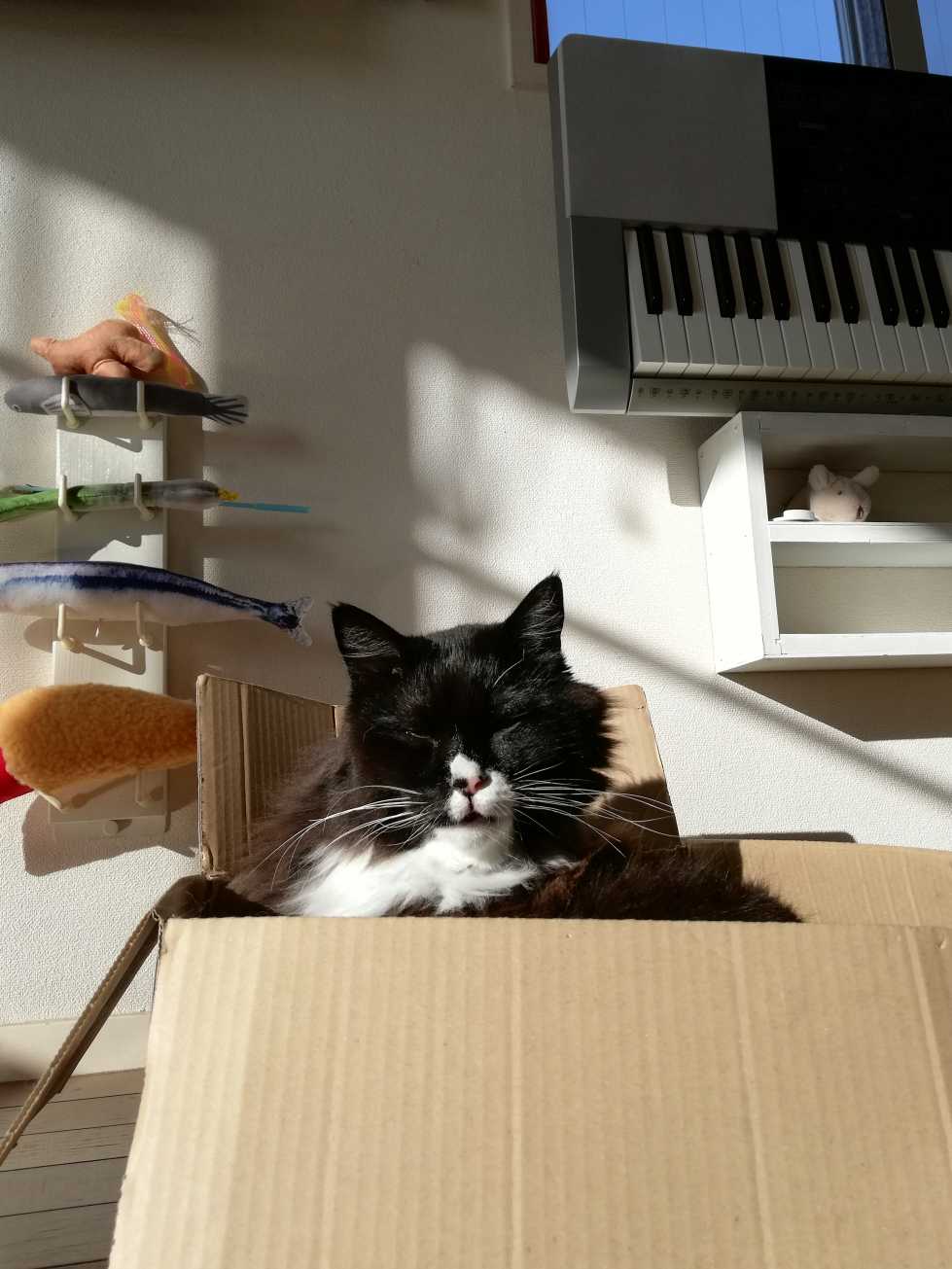 ![]() 朝、部屋が ひなたでいっぱいになると、 箱に入って ひと眠りするくーちゃん。 ![]() 寝る前になめなめ。 ひなたぼっこしながらの なめなめは大事。 毛がふかふかになるし、 猫らしさを保つのにも。 ![]() そう、くーちゃんは 猫だから なめなめを いっしょけんめしないと。 やり甲斐のある毛の量。 ![]() 足を上げて おケツのあたりも。 こんなときでないと おケツのまわりなんて あまりなめなめしないし。 ひなたぼっこして 気分が乗っているときに。 ![]() いっぱいなめた。 がんばった。 ![]() やっと落ち着いて これから寝るとこ。 ![]() すぐ眠くなって うとうとする。 ![]() かと思ったら、 また目を開けて うーん、と考える。 ![]() なめなめ まだ、やり足りなかった。 このへん やってなかった。 ていねいになめなめする くーちゃん。 足はしっかり抱えながら。 + + + ところで、窓。 こないだ 分解したパネルヒーターの フェルトを サッシに貼っていたけれど、 ![]() → 間に合わせパネルヒーター ![]() 赤いのに変えてみた。 赤というか朱色。 濃いオレンジ。 ![]() 元々の粘着剤がついた グレーのフェルトを 適当に貼っていたけれど、 その粘着力がもう劣化して ときどきポロッと はがれてきていたので どうせ貼り直すなら もっとステキな色にしたら どうかしら、と 思ったのだった。 ![]() 店の手芸コーナーで このフェルトの色を見たとき、 「これはステキになるはず!」 と、この色以外は 目に入らなかったのだけど いざ貼ってみると 「…これでいいのか」 と迷いが出てきた。 想像と現実は 時にズレが生じる。 でもまあ、 この冬はこれで行く。 なんかクリスマスっぽくも 思えるし。 クリスマス終わっても 貼っとくけど。 = = = = = = = = = = さてー、 今日はまた 写真ないので 2年前の3歳くーちゃん、 おかえり1149日目は お休み。 代わりに これでも見ててー。 去年のくーちゃん。 ![]() → ヒーター前キープ = = = = = = = = = = おっきいくーちゃん。 今日は、2010年。 2010年12月17日の写真。 ![]() → 作り物の葉っぱなど 窓際の棚に乗るくつした。 ![]() くまちゃんを嗅ぐくつした。 ![]() 外をのぞくくつした。 ![]() 座るくつした。 - - - - - - - - - - ランキングサイト参加中 ![]() LINEスタンプ Tシャツとか ![]() 買ったものと欲しいもの お気に入りの記事を「いいね!」で応援しよう
