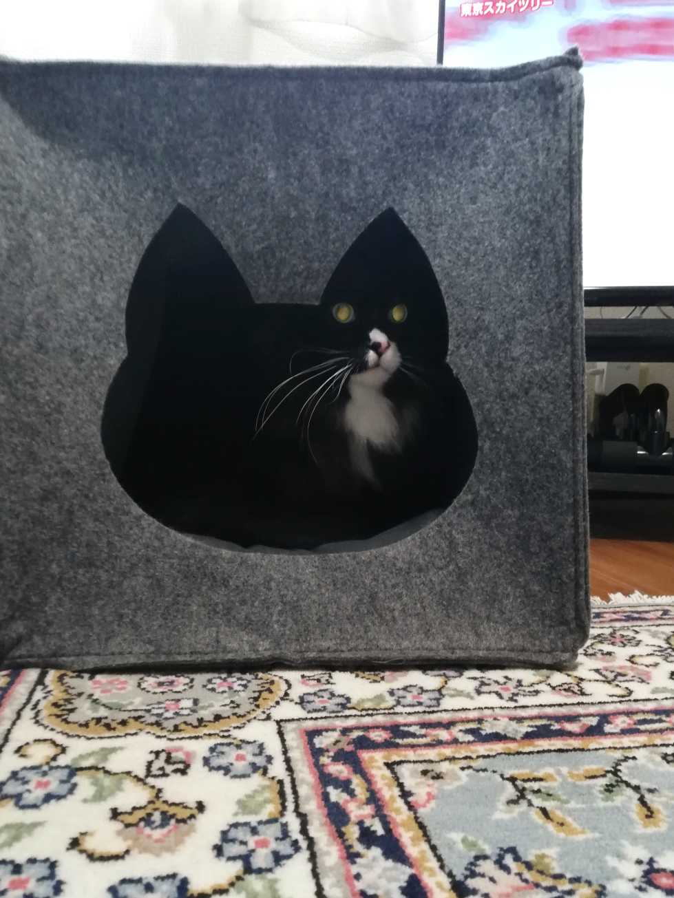 ![]() くーちゃんお気に入りの 猫穴ボックスを 持ってきていた。 これがあれば テレビの裏で引きこもり することないかと思って。 ぺたんこに折り畳めるから 持って来るのも楽ちん。 ![]() あれ?こんなとこに… と不思議そうに 振り向きつつ 入ってみるくーちゃん。 ![]() 恐るおそる 中まで入って においなどを確かめる。 ![]() 中の感じは くーちゃんのに よく似ている… においも くーちゃんのに似ている… ![]() これは くーちゃんのではないか! 確信を得て、 うれしそうに くつろぎ始めた くーちゃん。 ![]() おせちは今年も 近所のフレスコ製。 ![]() 色とりどり。 美しい。 ![]() 田作りや棒鱈・昆布巻・ 黒豆・きんとん、 たくさんの煮しめは おかん製。 ![]() 色んなものたくさん。 今年の最初の食事。 ![]() これにまだ お刺身もあった。 ![]() おかんはお雑煮を 作ってくれている。 ![]() お正月のお花は おとんが買ってきた。 ![]() 今年のお酒、 京姫酒造の大吟醸 匠。 これもおとんが 買っといてくれた。 ![]() お雑煮ができた。 京風ではなく 滋賀風。 ![]() おもち隠れて見えないが おかんがどこぞで 買ってきたという おいしい丸餅。 ![]() いよいよ食べますよ という時になっても、 出てこないくーちゃん。 ![]() ごはん、今いい。 さっき少し ポリポリ食べたのだ。 ![]() そんなわけで 大人たちだけで いただきます。 ![]() お刺身もあるんだよ。 と、マグロを 持って行く。 ![]() いらーん。 と横を向く。 ![]() えー、 そんなこと言わずに。 マグロだよ? でもいらんと。 ![]() 白いお魚もあるよ。 鯛はどうでしょ? ![]() ならハマチは? 結局どれも 今は欲しくないのだと。 つづく = = = = = = = = = = さてー、 今日も 写真ないので 2年前の3歳くーちゃん、 おかえり1182日目は お休み。 代わりに これでも見ててー。 5年前のくーちゃん。 ![]() → いつも放置なぬいぐるみ = = = = = = = = = = おっきいくーちゃん。 今日は、2009年。 2009年1月20日の写真。 ![]() → 牛スネ肉のポトフ・生肉添え 【猫ごはん】 くつしたの晩ごはん。 中身は、牛スネ肉、 じゃがいも、人参、大根。 大人は、牛スネ肉のポトフ、 赤いペペロンチーノ、 など。 ![]() いただきますのくつした。 ![]() 生肉から食べ始めるくつした。 ![]() 持ち出して食べているくつした。 ![]() おいしーい。のくつした。 - - - - - - - - - - ランキングサイト参加中 ![]() LINEスタンプ Tシャツとか ![]() 買ったものと欲しいもの お気に入りの記事を「いいね!」で応援しよう