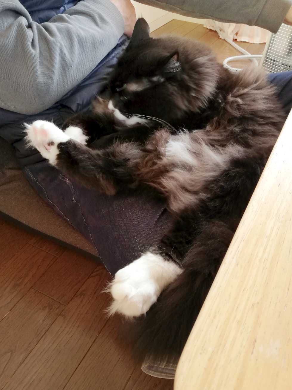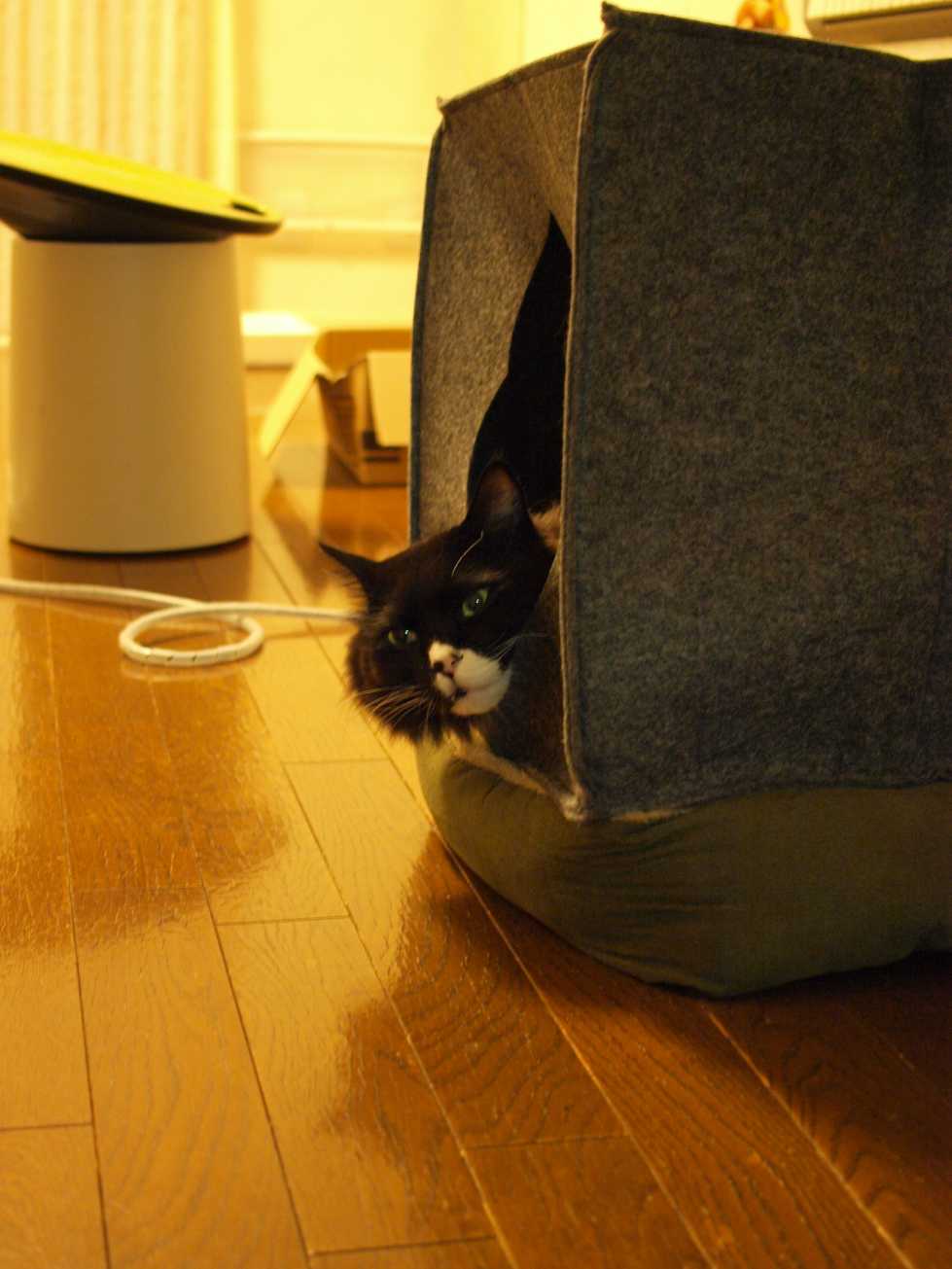 # 3497 (1/3)年が明けてすぐまるの誕生日。京都でごちそうたくさん食べてきたし、これと言って大したものは用意しないけどびんちょうマグロのお刺身などつまみつつスパークリング日本酒を飲んだりした。いっときはシャンパンをよく買ったけど、近年はもっぱらこれ。澪、甘くて軽くて飲みやすい。あとは買い物に行くと必ずかごに入れたがるおいなりなど。お刺身、包丁出すのが面倒くさくて(またか)調理バサミで切るからやわらかい身がほぐれてガタガタだけど、これはまあ我が家ではいつものこと。手前の細々した切り身はくーちゃんのおかわり用。だいたいせがまれるので。ちなみに刺身のつまはアルファルファ。そんなわけでくーちゃんもびんちょうマグロを食べている。マグロはキハダなどよりびんちょうが好きそうだ。自分のお皿の分はきれいに食べ切って、あとは大人の横に座ってちょっとずつおかわりをもらうのだった。おたんじょうびということで、当然のようにケーキなど。これはスポンジもクリームもチョコ味だったので、くーちゃんは食べず。というかマグロに大変満足してぐっすり寝てた。夜まで猫穴ボックスで寝ていた。目が覚めたけど出てくるでもなく中でゴロゴロしている。にょーんと突き出した手。くつろぎまくりなのだ。のばすとながーい手。普段は短く見せてるけど長くもできるのだ。猫穴ボックス快適すぎて出たくならない。猫を怠惰にするベッドなのではないだろうか。別にすることないから入ったままでも問題ないのだ。夜に再びケーキの時間。今度は小ぶりなチーズのモンブラン。栗ではなくチーズ風味のクリーム。今度はくーちゃんもケーキタイムに参加。白いクリームだけどちょっといつもとにおいが違う。でもチーズも嫌いじゃないからなめたらおいしかった。クリスマスから続く年末年始のケーキラッシュ、そのしめくくりになるであろうケーキ。これでしばらく食べないはず。たぶんねー。= = = = = = = = = =さてー、今日は写真がないので2年前の3歳くーちゃん、おかえり1185日目は お休み。代わりにこれでも見ててー。5年前のくーちゃん。 → くーちゃん仕様 → デカねずみと → さわらんでにょす → ねむいけど = = = = = = = = = =おっきいくーちゃん。今日は、2009年。2009年1月23日の写真。 → 牛モモチンゲン菜ごはん 【猫ごはん】 くつしたの晩ごはん。中身は、牛モモ肉、チンゲン菜、作り置きごはん。大人は、煮込みラーメン鍋など。持ち出して食べているくつした。おかわりを食べるくつした。2杯目もうまー。のくつした。- - - - - - - - - -ランキングサイト参加中 LINEスタンプ Tシャツとか 買ったものと欲しいもの