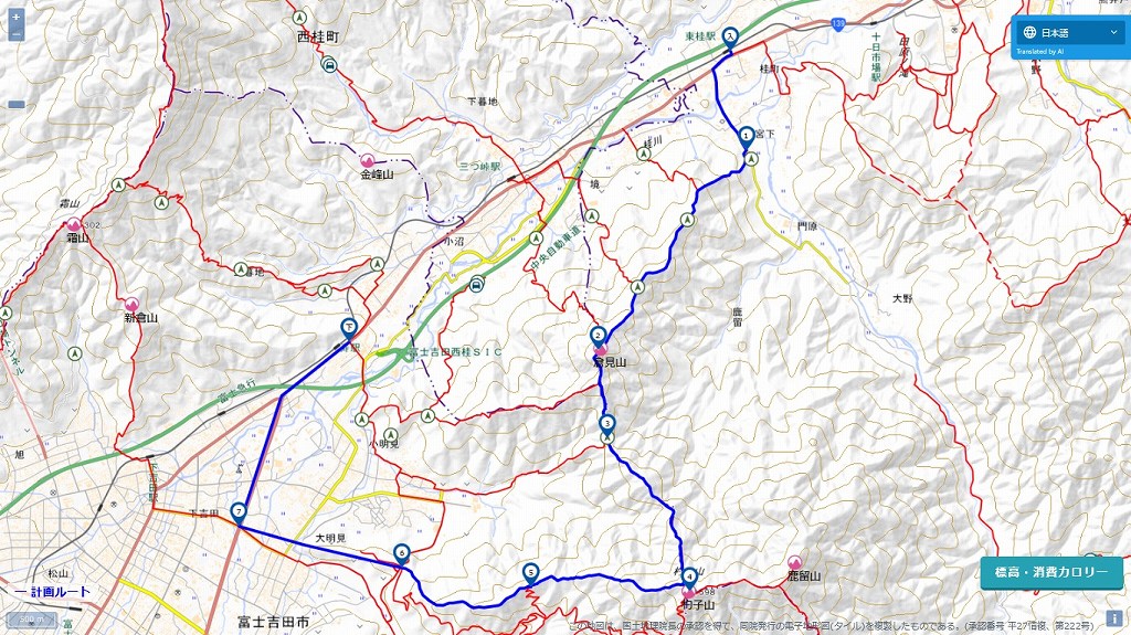 快晴、積雪、2日間の空き時間と三拍子揃い、いよいよ大菩薩嶺を避難小屋泊縦走する。1日目は猿橋駅からバスで奈良子入口BS下車、宝鏡寺からバリルートで宮地山を踏み、いったん金山峠に下る。この辺りはチェーンスパイク必須だ。そこから登り返して姥子山、雁ヶ腹摺山と巡り、大峠まで大きく下り黒岳を踏む。また大きく下って泊地の湯の沢峠避難小屋へ。姥子と雁ヶ腹からの眺めは素晴らしいの一言だ。予想以上の寒さでほとんど寝られず、900mlの水が凍っている!2日目は5:30に小屋を発ち、稜線を北上して大菩薩嶺を目指す。ライトを照らし、最初からチェーンスパイク装着だ。途中、雪で隠れている木の根にチェーンが引っかかり、思いっきり転倒も、膝をすりむく程度で登山を続行する。牛奥ノ雁ヶ腹摺山や小金沢山はもちろん、大菩薩嶺からの眺めは圧巻だ!山小屋は全て閉まっており、登山者は5人とすれ違うのみの静かな山旅だ。大菩薩の湯で疲れた体を癒し、運よく塩山駅行きのバスに乗車。無事に帰還となる。7:15、奈良子入口BSに降り立つ時点で手が縛れるほど寒い!途中の温度計はマイナス4度の表示だからね。朝日に照らされる宮地山。宝鍾寺の先、宮地山の登山口がある。バリルートなのだが、うっすら踏み跡はあるよ。ここは中央の分岐に目る場所を右に進む。思いもよらぬ道標。凄まじい倒木、バリはこーでなくっちゃね!(^^)!やや高度を上げ、左手には素っ裸のお富士がチラリ。快晴ぷりが良いねぇ!宮地山手前はなかなか登り応えがあるな。ジャケットのフロントジッパー全開、両サイドのポケットも開けて換気だ。早くも雪だ!この先でほぼ直角に西へとルートを取るのだが、またもや道標がある。バリルートの入門だね、ここは。9:00、チェックポイントの宮地山に到着だ。三角点をパチリ☆汗ばんでいるからザックを下ろし、暫し山頂の雰囲気を満喫。2分ほど休憩し、次のチェックポイントである大垈山を目指そう。日当たりの良い尾根筋は、雪は消失。昭和の遺構か?山と高原地図だとグレーの破線で、南下すると南沢川に出られる。道筋が右に延びているが、山と高原地図で?マークのある場所だ。試しに右に行くと、トラバース気味にどんどん下る。明らかにルート外れ。上の写真の場所に戻り、尾根筋を目指して不明瞭なルートを攻略する。無事、尾根上に復帰。2024年のクリスマスイブに登った尾根を見上げる。先ほどから右後方を、ザク・・ザクと音がするんだよね。何回か振り返るが誰もいない。ラジオを聞きながら歩いているのだけど、開放型のヘッドフォンだから周囲の音もよく聞こえる。番組から流れてくる音じゃないのは確か。その詳細は後日に。送電鉄塔付近では植林中。ここでバリルートはお終い。一般登山道は再び雪に。右は大垈山(おおぬたやま)を巻く、左は山頂。大垈山の山頂に到着だ。立木が多く、展望はいまいち。ひときわ大きなブナの木だなぁ!!樹齢約300年とある。この辺りの山の主だね。幹にポンポンしよう姥子山と雁ヶ腹摺山だろう。この場所少し手前が、積雪によりルート取りが難儀。途中、道標が地面に落ちているのを発見。もう少し雪深くなると見落としてしまうな。こーゆルート取りする場所は、道迷いしやすい危険個所だ。ここが金山峠だ。一般登山道とあって道標は多い。金山民宿村とあるのは、金山鉱泉方面のことだろう。地図にそのような地名は載っていない。因みにそのルートは『危険 荒廃道』と手書きであり、地図でも赤破線の沢ルートだ。百閒干場なる林道との出会い。この先10分ほど歩くと、姥子山口があるのだが。だいぶ奥の堰堤まで行ってしまう。引き返して東の斜面を注意深く見つつも、姥子山口や姥子山の道標は見当たらず。道筋も見当たらない。代わりに、登山道ではない、立ち入り禁止の柵はあるのだが。道標が雪に埋まっているのか??姥子山へのルートは尾根上にある。登りやすそうなルーファイして、バリルート行くぞ!!急登をこなし尾根上に出る、オレの勝ちだ(笑)先行者の足跡、2人だな。クマ公が潜んでいそうな藪の手前では、ホイッスルを吹く。相当古い道標だな。何て書いてあったのだろう。姥子山が間近だ。因みに東峰と西峰から成る双耳峰だ。再び林道との出会い。ここから入る。だいぶ積雪が。滑落の恐れがある雰囲気、チェーンスパイクを装着しよう。途中やや難儀する箇所があるものの、無事に姥子山に到着。12:01、お昼だね。予定より19分早いだけだが、まずまずのペース。今日初めて登山者に会う。先客が2名、お互い挨拶を交わす。姥子山からの眺めは素晴らしいの一言だ!関東平野から丹沢山塊までもが見渡せる。すげぇ~なこの山!!お富士が雲を吹いているよ。3,500m上空は暴風だな。こちらは雁ヶ腹摺山方面。絶景を眺めながら、お昼のカレーパンを食べよう。とその時、先客の方から鍋料理のお誘い。一旦はお断りだが、2回目のお誘いで有難く頂こう。真冬の山頂でのお鍋は、格別だ!体が温まるし、