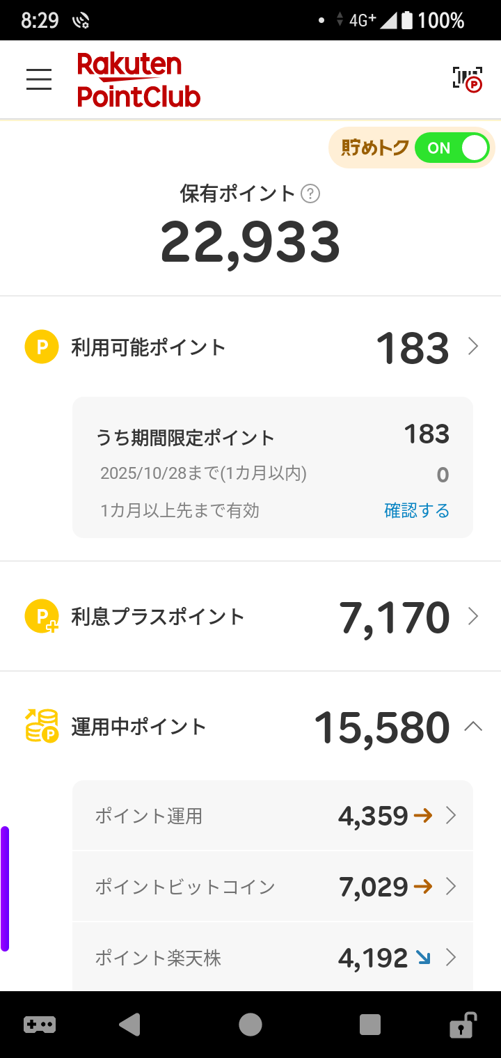 ![]() ![]() ポイ活! ポイント運用! dポイント、変動なし! 楽天ポイント! 利息プラス、17P追加! ポイント運用、変動なし! ポイントビットコイン、9P減! ポイント楽天株、変動なし! 合計、8ポイント増えました! そいつぁよかった! 年間1600万ポイント貯める達人が教える ポイ活で月5万円得する! (扶桑社ムック) [ しんぽい ] お気に入りの記事を「いいね!」で応援しよう