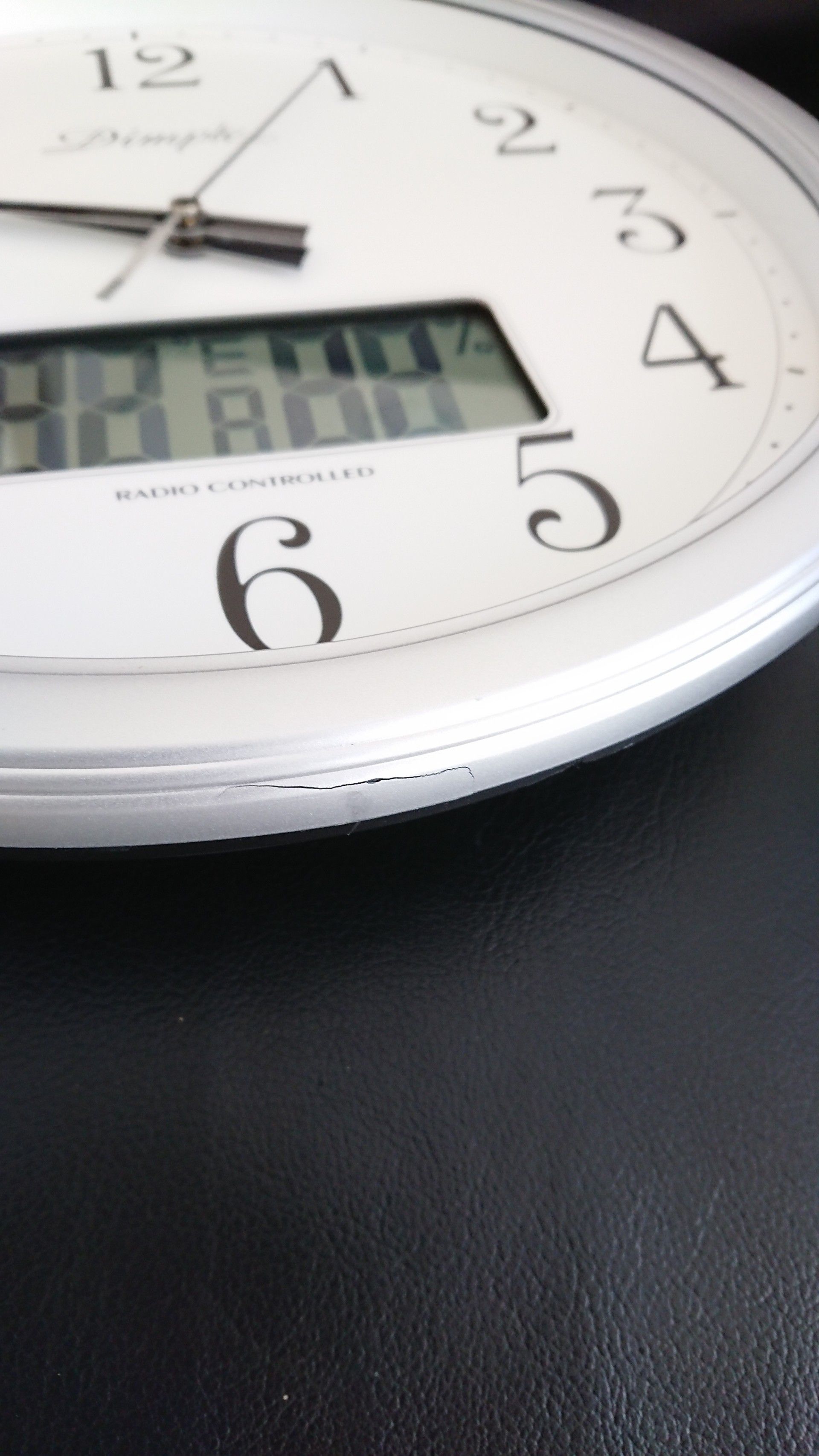 亡くなられた皆様のご冥福をお祈りいたします。 この日を忘れずこれからも防災意識を常に持ち 暮らしていこうと思ってます。 + + + 昨日、急に「ガチャ――ン」と聞こえ、 リビングに行ってみると、 壁掛け時計が落ちていました!! ガラスも飛び散ってる。 (ToT)/~~~ヒィィ とりあえず、子どもたちがいたけれど、 何もなくてよかった。 で、急に時計が落ちた原因が 子どもたちが室内でボールで遊んでいて、 そのボールが思いっきり時計にあたったせいで 落ちたそう。 フロントガラスは粉々、 時計は下の方にヒビが入ってました。 ![]() 室内でボール遊びしていたのも危なかったんでだけれど、 ふと見たら、 時計をかけていたのが画びょうでした!! それは落ちるわっ ガビョ――ン (/ω\)言ってみたかった・・・。 ![]() で、早速セリアでピンフックを買ってきました。 ![]() これで安心?!かな。 ![]() ガラスがないけれど、 見た目は分からないのでOK! もしかしら、ホコリはたまりやすくなるので、 定期的に掃除したほうがいいかもな。 ( ..)φ ![]() 大地震が来てももしかしたら、 壁掛け時計が落ちていたかもしれません。 近くにいたら、飛び散ったガラスで 怪我をしていたかもしれません。 イロイロ防災について考えていたけれど、 まだまだでした(;_;) また見直そうと思います!! この機会にもう一度防災意識を高めよう ↓ 災害・地震・防災 防犯・防災 防災、防災用品 + + + + + 楽天スーパーセール あっという間に終わっていまったけれど、 気になるものがイロイロあったので ご紹介。 消毒用エタノール 霧吹きスプレーに詰め替えれば、いろいろ使えそうですね。 素敵な布団乾燥機のデザインに脱帽! 今なら2203円オフ とっても可愛い♡アーバンリサーチ×SHAKAのサンダル 今ならDEALで20%還元と 1000円オフクーポンがあります。 ブロガーさんたちの買い物ブログを見るのも楽しい♪ お買い物マラソン!スーパーSALE!