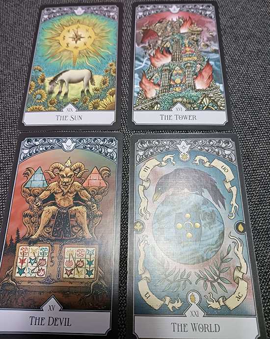 この手のゲームにありがちだが、謎の出来不出来にむらがあり、特に1回前のゲーム会でプレイした「ジャスティス」はひどかった。問題文(に相当するフレーバー混じりのテキスト)に「○○するのではない」と書かれていて、どうしても解けないから解答まで見たら「解くには○○しましょう」と書かれていた……問題文が矛盾してたら解けるわけねーだろw