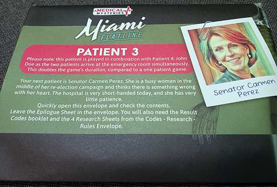 最後の患者3と患者4をプレイ。当然患者1人ずつプレイするつもりだったが、ルールをよく読むと、何とこれらの患者2人は同時にプレイするものだったw 1人でも大変なのに同時に2人診察するとか無理ゲー過ぎるw