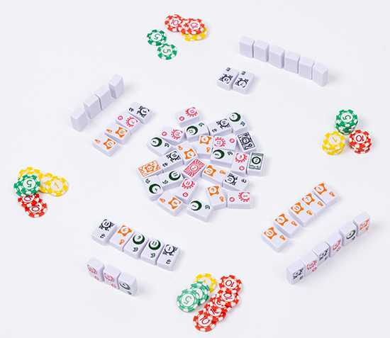 出せない、出したくないときはソフトパス。1人を除いて全員がパスしたら仕切り直し。誰か1人が出し切ったら終わって、残りの牌が自分より少ない“全プレイヤー”に対して、差分に等しいコインを払う。なので、たとえば4位は1位と2位と3位の3人に払わなきゃならない。