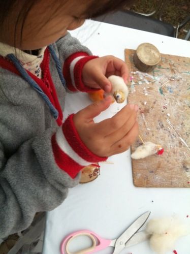 どしゃぶりの雨の中、イベントのお手伝いに行ってきました。雨天中止だと思っていたけど、テント張ってるのでできるという事務局からのお知らせがありました。だけど、お客さん全く来ず。。。昼前にやっと一組の親子さんが来てくれました。話を聞くとリピーターさんで毎年ここで干支の置物を作っているとか。そんな話を聞くと雨でも続けなくちゃと思います。パパさんの作品娘さんの作品あまりにも暇なので、12月に作る予定のしめ縄づくりの練習をしました。まずは綯い方を。右に綯うのが普通なんですが、正月用は左に綯います。(左綯いという)2人で協力してねじると簡単にできますが、やっぱり1人で作る方がカッコイイです。うまくなりたいな~いや、垂れがちょっと適当すぎませんか?私はがんばって2本作りました。後のはみなさんが練習したのをもらってきました。何かに使えないかな。。。