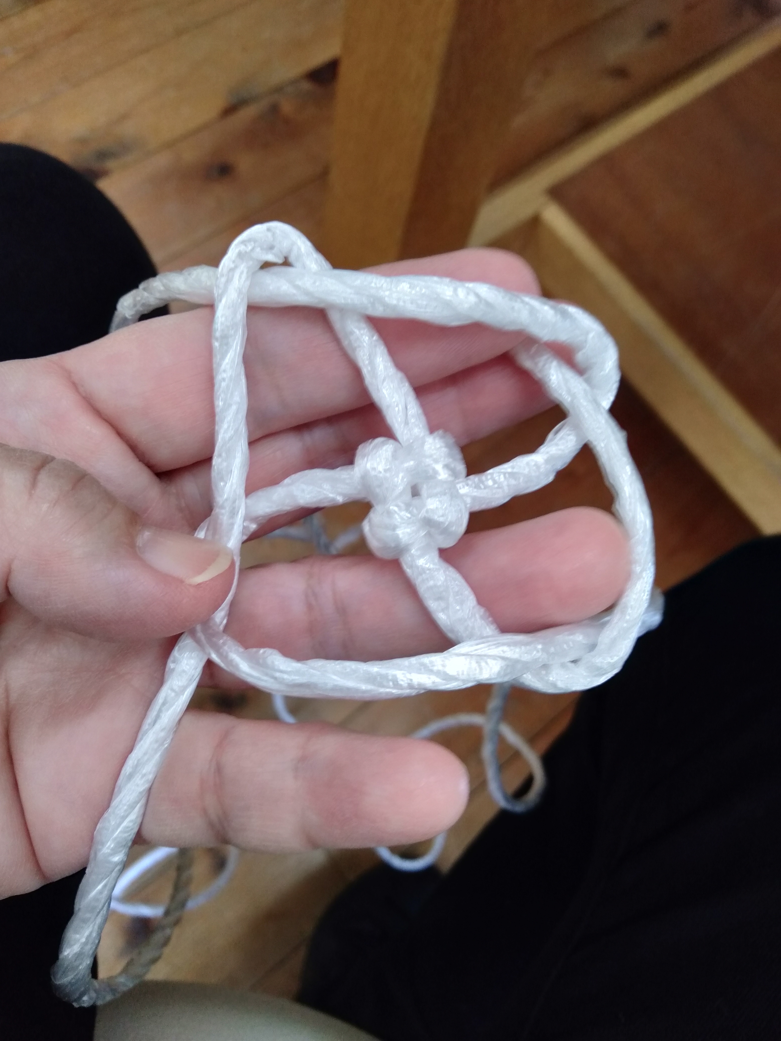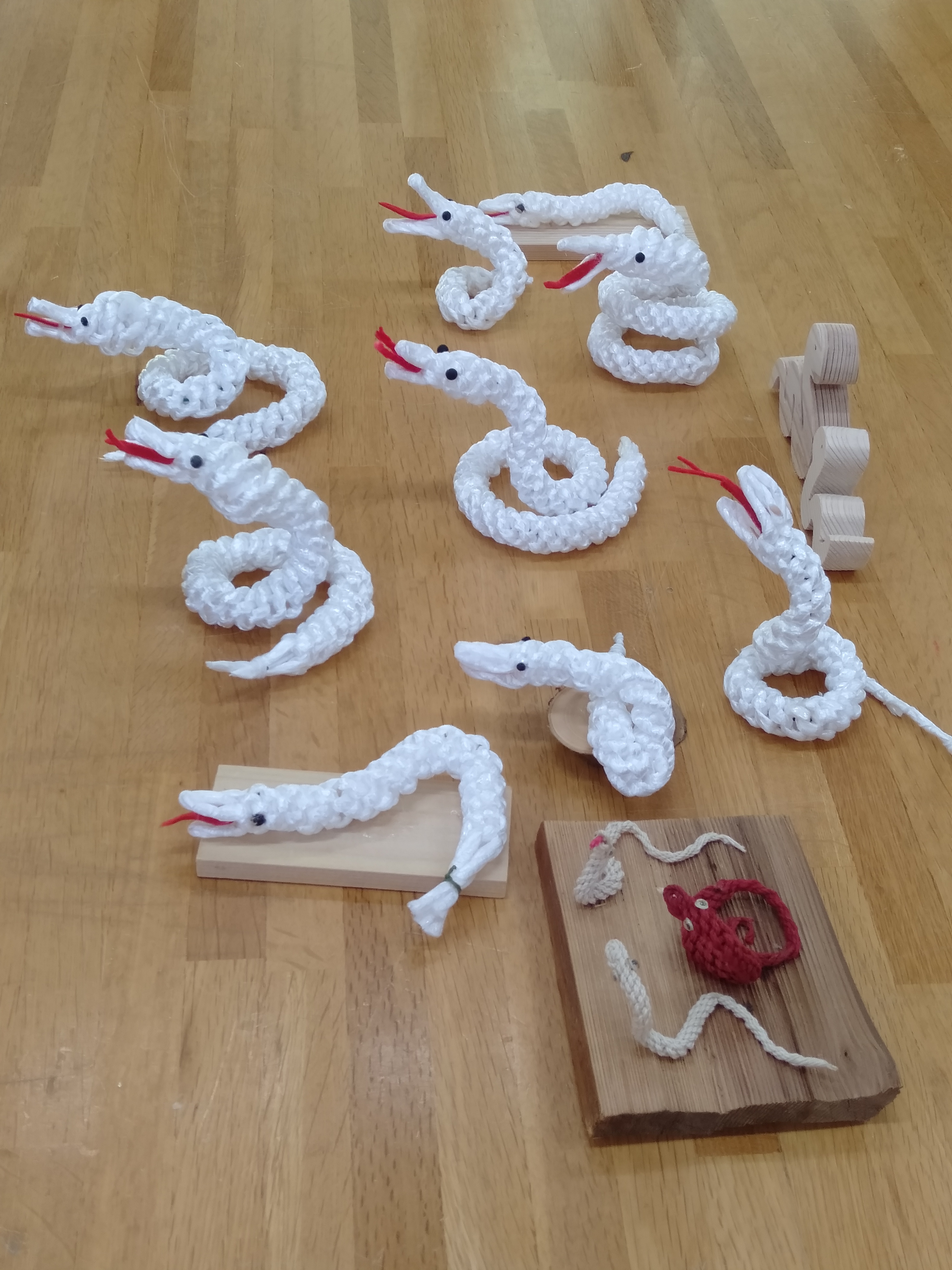 飛鳥里山クラブのクラフトサークルの定例会に参加しました。来年の干支のヘビをPPロープの組紐で作りました。