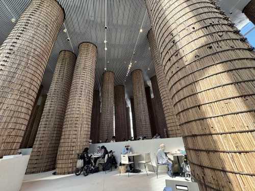 6時半すぎにコスモスクエア駅に到着。そこからタクシーで西ゲートに向かいます。桜島駅からの送迎バスの始発便より早く到着できます。タクシーを待ってると、来るタクシーはほとんどスマホアプリで予約されており、後から来た人がどんどん予約したタクシーに吸い込まれていく…そんなの使ったことのない私は焦りました。そこで隣でスマホを見ていた若い男性に声をかけてみました。 「相乗りしませんか?」 「ああ!是非!実はタクシー予約しててもうすぐ来ますので一緒に行きましょう。助かります!」 よかった… 実は彼もアプリタクシーは初めてでした。運賃は3千円ほどしますのでワン博の人は相乗りする人、結構多いです。結局7時過ぎには西ゲートに到着し、9時までは朝食、トイレ、万博友達とLINE、周りの人との情報交換などで、あっという間に時間はすぎました。腰掛けや暑さ対策は必要ですけどね。 イタリアは若い頃に5回、南から北までフリーで旅行しました。旅行先で行く美術館、博物館では最初に必ず大理石の彫刻の展示室があるのですが、正直ほぼ素通りしてました。今回の目玉でもあるファルネウスのアトラスのあるナポリの考古学博物館にはポンペイの予習のために行きましたが、巨大博物館にもかかわらず滞在時間は1時間程度。ポンペイの壁画やモザイクを見るだけで精一杯。アトラスなんてあったっけ?(笑) 9時前に西ゲート入場。まっすぐイタリア館へ。30分待ちでした。待っている間にPASONA NATUREVERSEも予約できました。(と思っただけで、予約できてなかった…不覚 今週はサルデーニャ州の展示をやっていて(週替わりで州の特集をやってます)旅行で行ったことなかったのでよかったです。 ![]() 館内に入る前にまず目に留まったのがムラーノ島のガラス工房サルヴィアーティが隈研吾とコラボしたシステムシャンデリア「dieXe」です。グラスユニットを組み合わせて建築空間に合わせた設置ができるようです。できれば暗いところで見たかった… SALVIATIのHPの隈研吾さんとのコラボを紹介する頁 隈研吾さんの建築は万博に4つあって、素材のリピート使いはやはり隈研吾さんだな。でも伝統的なシャンデリアも同じ形を繰り返し使っているから、現代のシャンデリアといったところでしょうか。 ![]() サルデーニャからは宝飾品やナイフや麦わら細工などの職人さんが来ていました。 ![]() ![]() クルルジョネスというサルデーニャの詰め物パスタ。ジャガイモ、ペコリーノチーズ(山羊)、ミントなどが入っており、屋上のレストランで頂けるようです。美味しそう… ![]() 建物の中は美術館と言ってもよでしょう。イタリア美術史の各時代の代表作品が展示されています。 ヤゴ「循環器系」 現代 3D技術を駆使した心臓の彫刻が鼓動によって変化する形状を30個に分けて制作され、そのコマ撮りアニメも映像作品として見ることができました。これは凄いです。「芸術は生命を再生する」というイタリア館のテーマにも合っているように感じました。 ![]() ボッチョーニ「空間における連続性の唯一の形態」 未来派 写真がわかりづらくでごめんなさい。未来派はダイナミックな力強い動きを表現する芸術運動で、これは彫刻の代表作です。初めて見ました。未来派の作品は絵やポスターしか見たことなかったです。天井の木製飛行機もやばいです。昔ローマから東京まで飛んだ飛行機を復元したのだとか。 ![]() 話題沸騰中の「ファルネウスのアトラス」 ローマ期 完全な形で残っているローマ彫刻をよく持ってきたな…欠けたらどうすんねん ![]() こちらは追加展示された「キリストの復活」 ルネッサンス期 ミケランジェロが制作しはじめたけど、お顔に大理石の脈が出てしまい気に入らなくて途中でやめてしまったのを、ベルニーニ(かもしれない人)が後々完成させたものです。よく似たポーズのミケランジェロの作品「ミネルヴァのキリスト」が別にあるのですが、もっともっと力強い印象です。 ![]() 鼻からお鬚に向かって脈がはっきり見えます。確かに嫌な位置だな。ライトで目立ちにくくしていますね。あまりミケランジェロらしくはないですね。 ![]() カラバッジョ「キリストの埋葬」 バロック期 バチカン市国の展示となります。個人的にはドラマチックな宗教画という印象です。カラバッジョは活躍したのち殺人を犯し、追放され旅の途中で果てました。 ![]() レオナルド・ダ・ヴィンチのスケッチ 立ち止まらずに見なくちゃいけなくて、なかなか残念な状況だった。 ![]() サルデーニャ州の展示です。紀元前9〜8世紀頃って日本じゃ縄文時代。土偶、勝ってるかも(笑) ![]() イタリア館の屋上の庭園です。レストランもあります。 ![]() 様々な花が植えられており、養蜂箱も置いてあります。万博では植栽も楽しんでいます。それもまとめてアップできたらいいな。 ![]() イタリア館に1時間近くいました。本当に見応えありました。写真もまだまだあるのですが、一部だけ紹介しました。この後10:40のパソナ