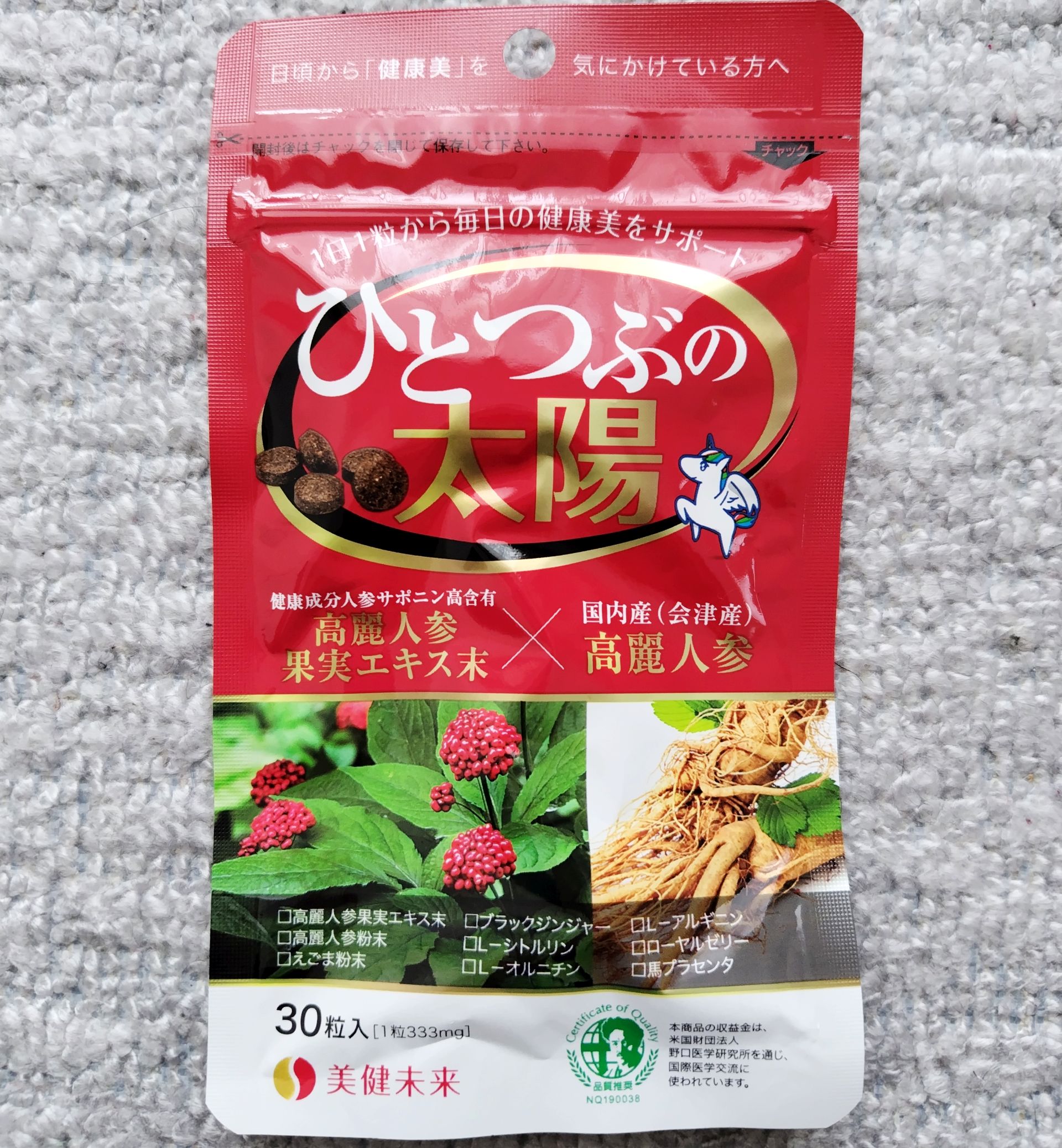 高麗人参サプリ「ひとつぶの太陽」を試しています。