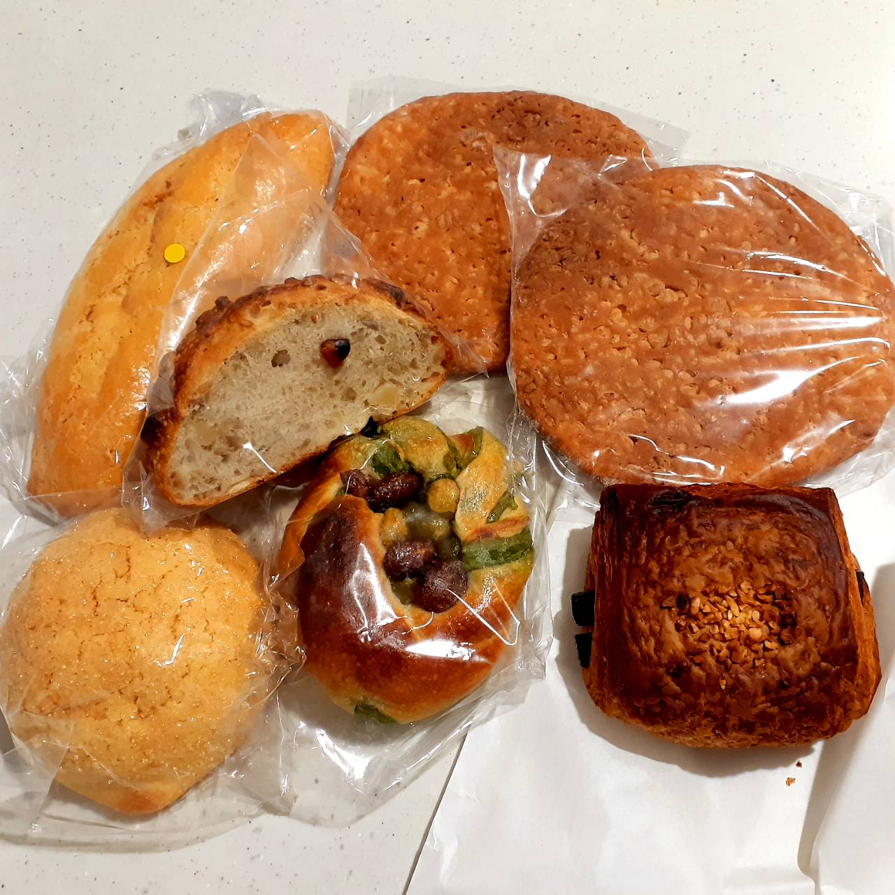 左上のはチョコとピールとけしの実のフィリングが包まれたパンにクッキー生地のってます♪