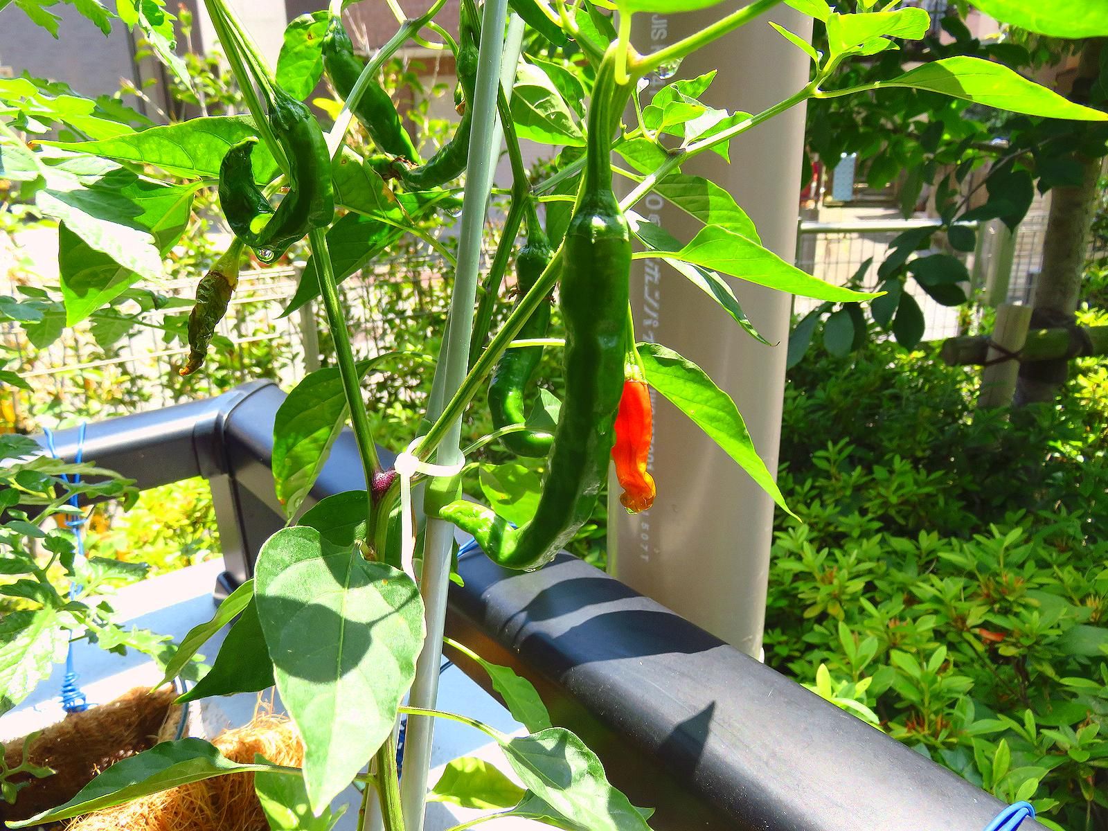 今年は日当たりの良い場所に唐辛子を育ててみたら成長が早くて良かった。