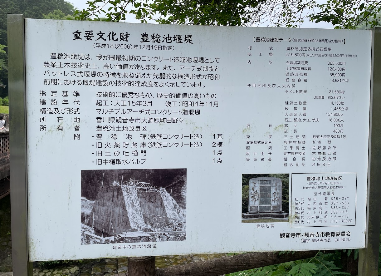 豊稔池(ほうねんいけ)は、香川県観音寺市にあるため池で、日本最古の石積式マルチプルアーチダムです。