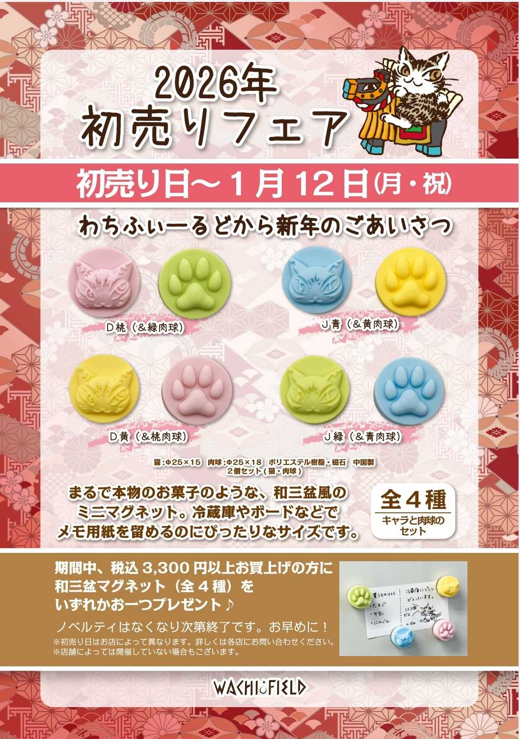 『初売りフェア』 1月12日(月祝)まで 期間中、税込3,300円以上お買い上げの方に 和三盆マグネット(全4種)を いずれかお一つプレゼント✨🎁✨