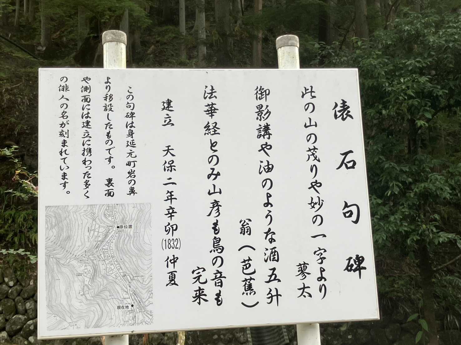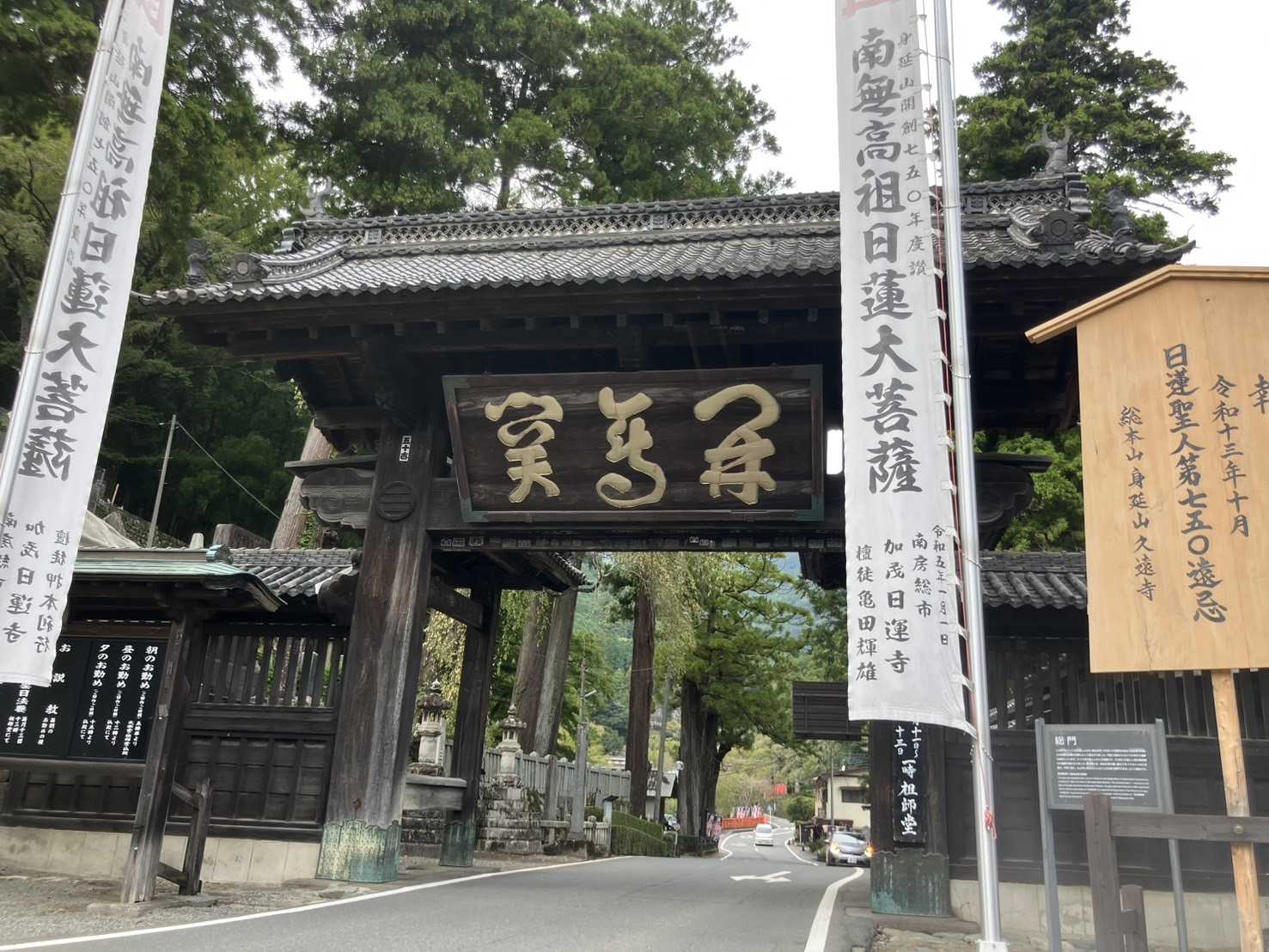 特に12日夜には日蓮聖人をしのぶ伝統行事の万燈行列(練供養)と奉納式が盛大に行われる予定です。 昨年の万燈奉納式の様子 ![]() 今年の御会式の予定:身延山久遠寺HPより ![]() 万燈行列の前に、総門から三門まで歩いてみました。 身延山総門:ここから久遠寺まで約2キロ ![]() 総門をくぐって左側に芭蕉の句碑があります。 ![]() ![]() 門前町をぶらぶら歩くと魅力的なお店がたくさんあります。 ![]() 身延山バス停 ![]() 外国人のカップルや女性のグループをたくさん見かけました。 ![]() 身延山三門 ![]() 菩提悌