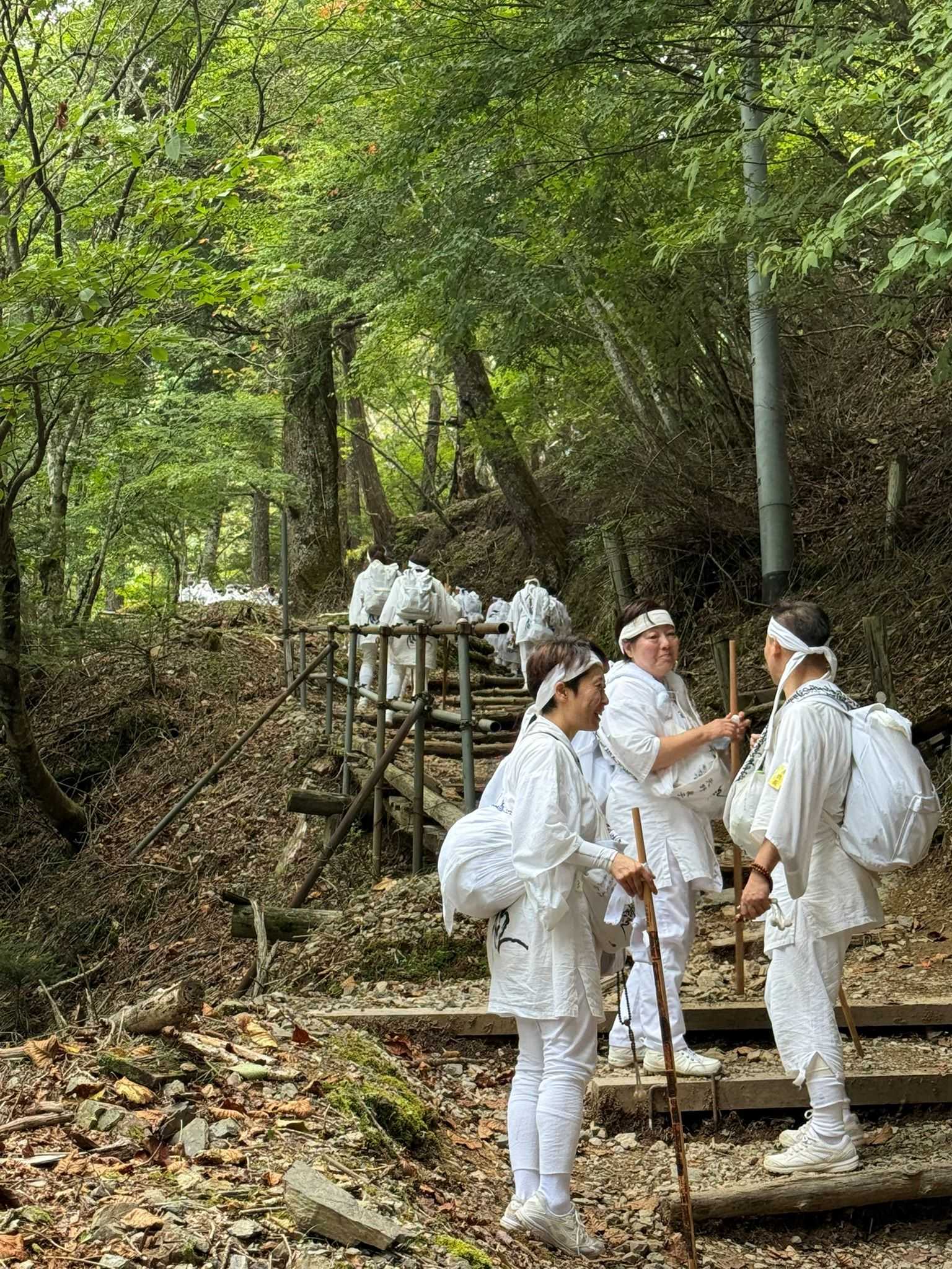 霊山の清々しい気を感じながら歩く、心洗われる登山です。 希望峰展望台 1980m:早川町の西側が見えるポイントです。 ![]() 希望峰周辺の樹林帯:静かな樹林帯で雨が降れば池になる可能性があります。 ![]() 希望峰展望台からの早川町:左から青笹山・青薙山・稲又山、谷は雨畑川上流・稲又谷で険しい山容です。 ![]() 和光門:表参道46丁目に位置し、和光門から山頂にかけては、七面大明神の神域とされています。 ![]() 白装束の信者:この日、「南無妙法蓮華経」の御題目を唱えながら推定500名の信者の方々が登拝してきました。 ![]() 表参道 赤沢展望台:左から富士見山(左)・甲府盆地・蛾ヶ岳、手前 身延山・赤沢集落 春木川上流:この右奥が大ガレで、崩壊した土石が流れこんできます。 ![]() 表参道1丁目: ここから敬慎院の50丁目まで灯籠が設置されています。