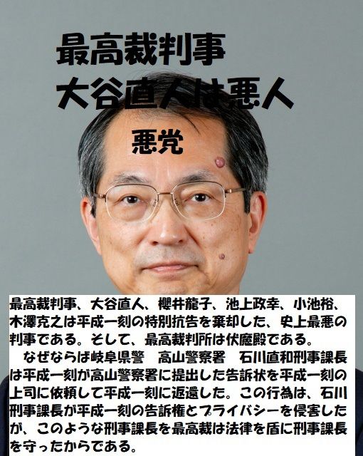 日本もこれで終わりです。 安倍晋三の目は節穴です。 盲目な状態で政治をしています。 政府は、最高裁判所の寺田逸郎長官が来月、定年で退官するのに伴い、後任に、最高裁判所判事の大谷直人氏を充てる方針を固めました。 https://blogs.yahoo.co.jp/yowork5487/37174772.html ![]() ![]()