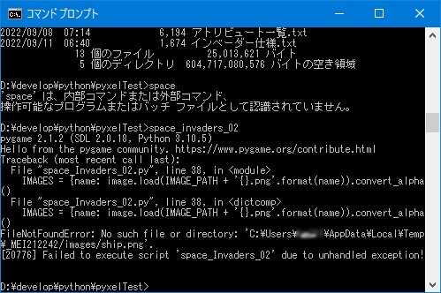 長いトンネルだったけど、ようやく画像付きの python プログラムを exe 化することが出来たテストプログラムでさんざん試してみたのが良かった最後にスペースインベーダーのプログラムで成功できたのが大きい最近では珍しく達成感を覚えた前提として spec の書き換えでは datas のタプルを記述するTree は複雑なフォルダ構成の場合はやり難い(個人の見解なので間違っているかもしれない)とにかく、元のソースファイルの中のファイルに関する記述部分は、全て書き換えが必要となるパスに関する部分は全て消し去って、ファイル名単独にすることこれが重要なポイントだ連想配列とか序数でファイル名を作成している場合もあるが、最終的にファイル名になる部分を resource_path に渡して帰ってきたものを使用する重ねて言うけれどパスは付けないこれで一旦コンパイルする>pyinstaller xxxx.py --onefileその後、出来た .spec ファイルを編集する------------ 元の .spec ファイル -----...a = Analysis( ... datas=[], ...)------------ 編集後の .spec ファイル -----a = Analysis( ...)a.datas += [('ファイル名','パス+ファイル名','DATA'),...]---------------------------------------datas のタプルはプログラム中で使用している全てのファイルを記述するこの後、spec ファイルをコンパイルする>pyinstaller xxxx.specこれで dist フォルダの中に xxxx.exe が出来上がっているはず普通にマウスクリックで動くはずだ動かない時は vscode のターミナルから走らせてみるとエラーが分かるこれだけ悩んだのだから、このスキルは身に付いたはずだが?