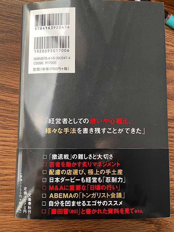 この2冊を続けて読みました。 ジャンルも語り口も違う2冊ですが、読み終えて強く感じたのは、経営者にとって「体力」と「勝負眼」は、ほぼ同じくらい重要で、どちらが欠けても前に進めないということでした。 堀江貴文『体力が9割』が突きつける現実・・・この本の主張は非常にシンプルです。 思考力・判断力・行動力の土台は、すべて体力であるということ。 経営者は「頭を使う仕事」だと思われがちですが、実際には、 意思決定の連続 ストレスの蓄積 不規則な生活 長時間労働 トラブル対応 と、心身への負荷が非常に大きい仕事です。 体力が落ちるとどうなるか。 判断が遅くなる 面倒な決断を先送りする リスクを過剰に恐れる 新しい挑戦を避ける これは「性格」の問題ではなく、単純に体が持たない状態なのだと、この本は教えてくれます。 藤田晋『勝負眼』に学ぶ経営者の覚悟 一方、藤田晋さんの『勝負眼』から感じたのは、最後に会社を伸ばすのは、理屈より「決断する勇気」というメッセージです。 経営には、 正解が分からない データが揃わない 失敗すれば痛みが大きい そんな場面が必ず訪れます。 そのときに必要なのが、腹をくくる力、勝負に出る胆力、周囲に反対されても進む意志。 つまり「勝負勘」や「覚悟」です。 どれだけ頭が良くても、どれだけ分析ができても、決断しなければ何も始まらない。 藤田さんの言葉には、実際に大勝負を繰り返してきた経営者ならではの重みがあります。 2冊を通して見えた「経営者に本当に必要なもの」 この2冊を合わせて読むと、経営者にとって本当に重要なのは次の2点だと感じました。 ① 体力は「経営スキル」そのもの 体力があるから行動できる 体力があるから判断できる 体力があるからリスクを取れる 体力は根性論ではなく、経営能力の一部です。 ② 勝負眼は「最後の一押し」 データでは決めきれない場面 全員が慎重になる局面 ここで踏み出すかどうか その瞬間に会社の未来が決まる。 経営とは「体力 × 勝負」の連続 経営を続けていると、 毎日が勝負 でも毎日が消耗戦 という感覚になります。 だからこそ、体力がなければ、勝負の土俵に立てない 勝負眼がなければ、体力があっても停滞する この2冊は、「経営者は精神論だけでも、理論だけでもダメだ」ということを、別々の角度から教えてくれました。 朝に体を動かし、よく食べ、よく寝て・・・そして、いざというときは腹をくくる。 結局、経営はシンプルです。 経営者にとって体力と勝負眼は「両輪」であるということでした。 どちらか一方では足りない。 どちらも鍛え続ける必要がある。 という事で、堀江貴文さんも藤田晋さんも私よりもだいぶ年下ですが大経営者ですので、彼らの1%でもマネができれば、もっと自社の経営が上手くいくのでは・・・と(汗)。 ![]() ![]() ![]() ![]() 「トランクルーム貝塚」「スタジオ0724」「 貝塚不動産.com」 「貝塚卓球センター」「テレワーク&スタディ貝塚」 「貝塚名越パーキング」 大阪府貝塚市名越661 tel:072-446-0798 mail: info@sasatani.com にほんブログ村 にほんブログ村 にほんブログ村 大阪府 ブログランキングへ お気に入りの記事を「いいね!」で応援しよう
